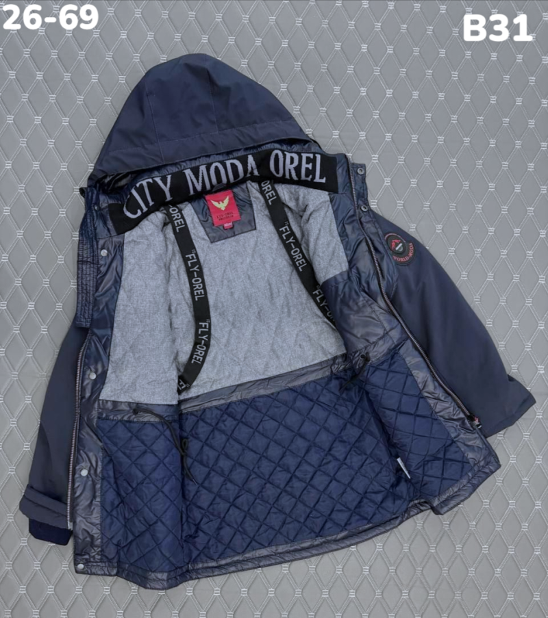 Внутри куртки на грудии спинке подкладка из трикотажа создает дополнительный слой утепления.
