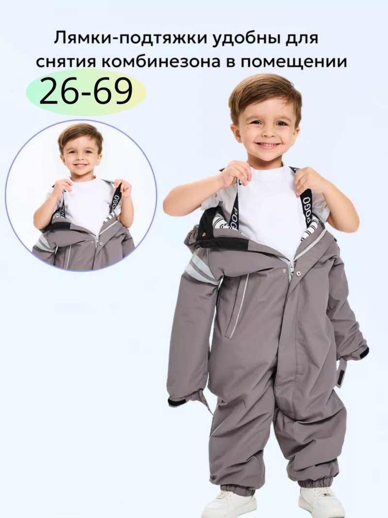 Комбинезон Super Pogo имеет утеплитель холлофайбер 100 г/кв.м, обеспечивая дополнительное тепло в прохладные дни.