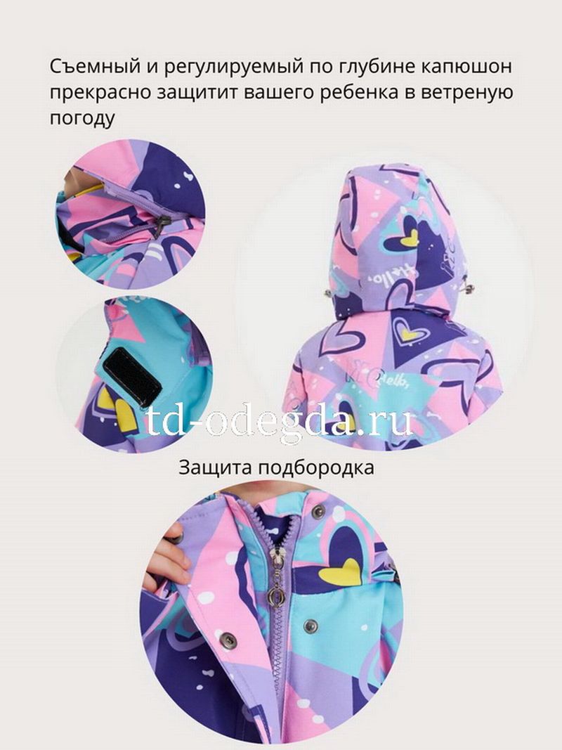 Съемный и регулируемый по глубине капюшон прекрасно защитит вашего ребенка в ветреную погоду.