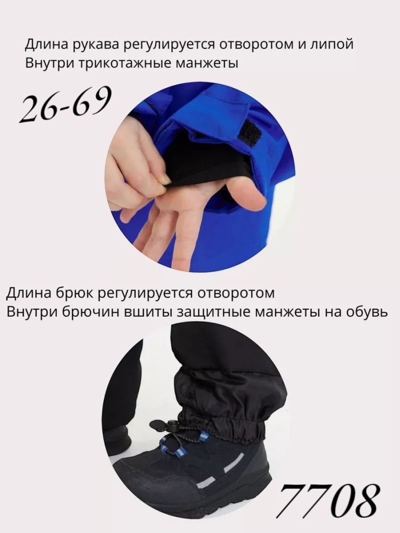 Рукава куртки регулируются отворотом и липучкой, что позволяет носить костюм несколько сезонов.