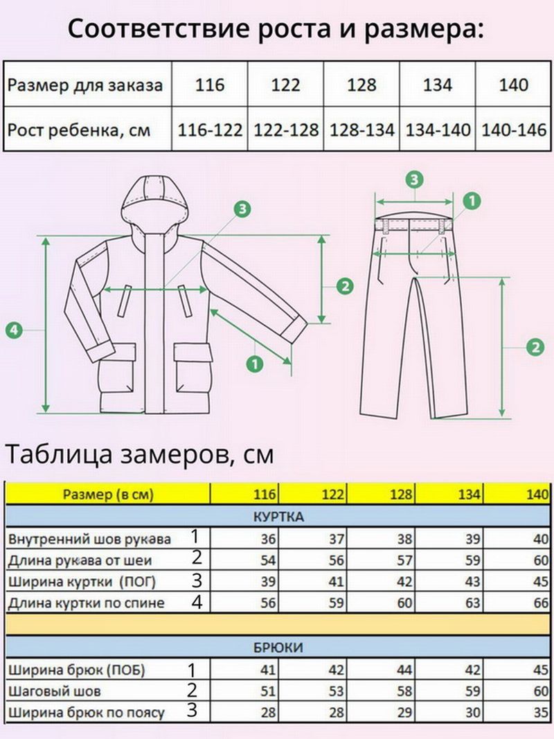 КОСТЮМ С ЗАПАСОМ +6! Модный и стильный костюм демисезонный для девочки. Мембранный костюм на весну и осень изготовлен из усиленной мембранной ткани с показателямя мембраны: водостойкость: 5 000 мм, воздухопроницаемость 3 000 г/м2/сут. Это значит, что он износостойкий, дышащий, не пропускает воду и ветер. Утепленный костюм с утеплителем термолайт 100 грамм. -Удобная куртка на молнии с ветрозащитной планкой и защитой подбородка. -На груди и спинке подкладка из трикотажа создает дополнительный слой утепления. -Съемный и регулируемый по глубине капюшон прекрасно защитит вашего ребенка в ветреную погоду. -Длина рукава регулируется отворотом и липой, что позволит носить костюм несколько сезонов. -По низу куртки имеется утяжка для регулировки по ширине. -Брюки на лямках с высокой съемной спинкой очень удобные и не сковывают движения. -Вы можете самостоятельно регулировать длину брючин при помощи отворотов, что позволит носить верхнюю одежду несколько сезонов. Защитная манжета на сапожок обеспечит плотное прилегание к обуви Вашего ребенка. -Светоотражающие элементы обеспечивают безопасность прогулок в темное время суток. Температурный режим 0...+15.