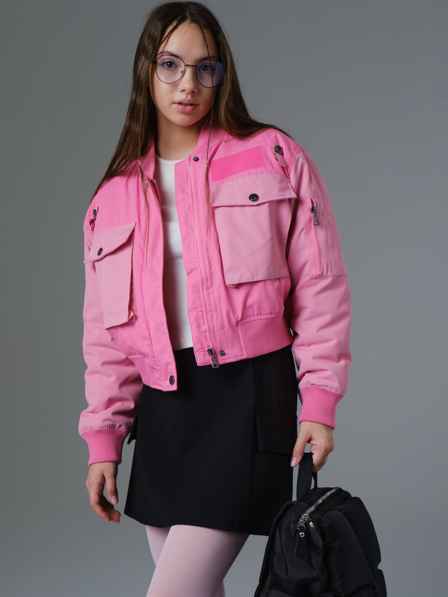 Стильная укороченная куртка-бомбер свободного силуэта на подкладе с утеплителем с трикотажным воротником-стойкой и контрастными по цвету рукавами и карманами. Застежка на молнию, защищена планкой от ветра, планка фиксируется копками. Низ куртки и низ рукавов собран на резинку. На полочке накладные карманы с клапаном имеют дополнительную боковую прорезь для рук. Клапаны застегиваются на кнопки. Над карманами расположена декоративная нашивка и декоративные элементы в виде петли с кнопками. На левом рукаве оригинальный накладной карман на молнии с нашивкой для мелочи. Подходит как на весну, так и на осень для температуры до 0 градусов, устойчива к попаданию влаги. Вся наша продукция сертифицирована и соответствует высочайшим стандартам качества, наша компания является участником программы "Бережливое производство"