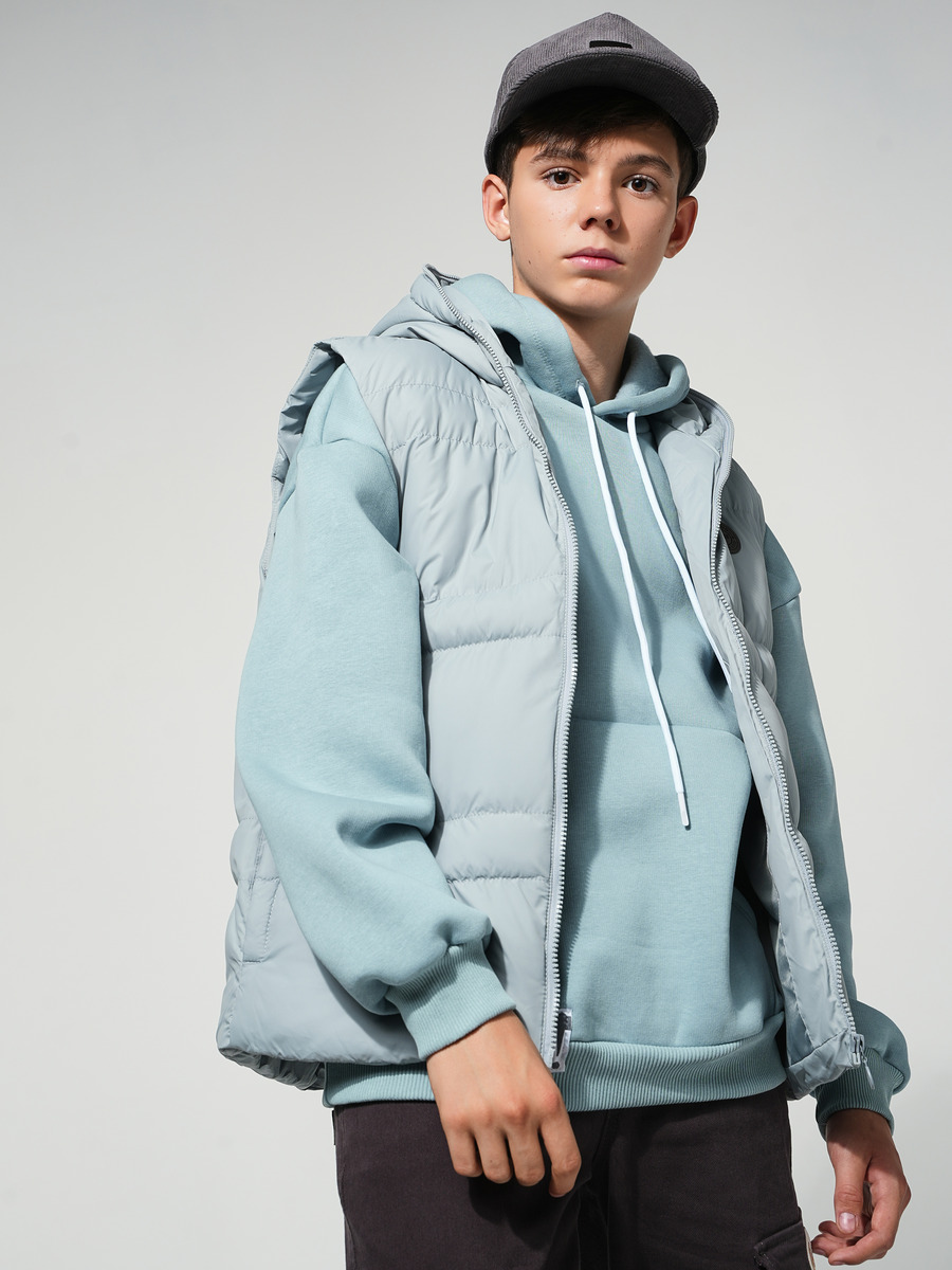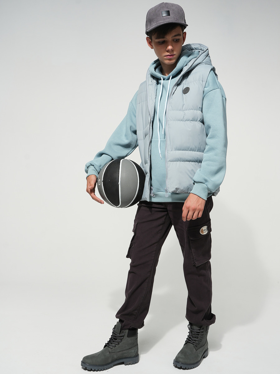 Утепленный демисезонный стеганый жилет свободного прямого силуэта. Втачной капюшон, застегивающийся на высокую молнию, надежно защищает от ветра и дождя. На полочке светоотражающая нашивка с фирменным логотипом. Застежка центральная на молнии с ветрозащитной стеганой планкой, на круглом пуллере застежки-молнии фирменный логотип. Два удобных кармана в боковых швах. Вся наша продукция сертифицирована и соответствует высочайшим стандартам качества, наша компания является участником программы "Бережливое производство"