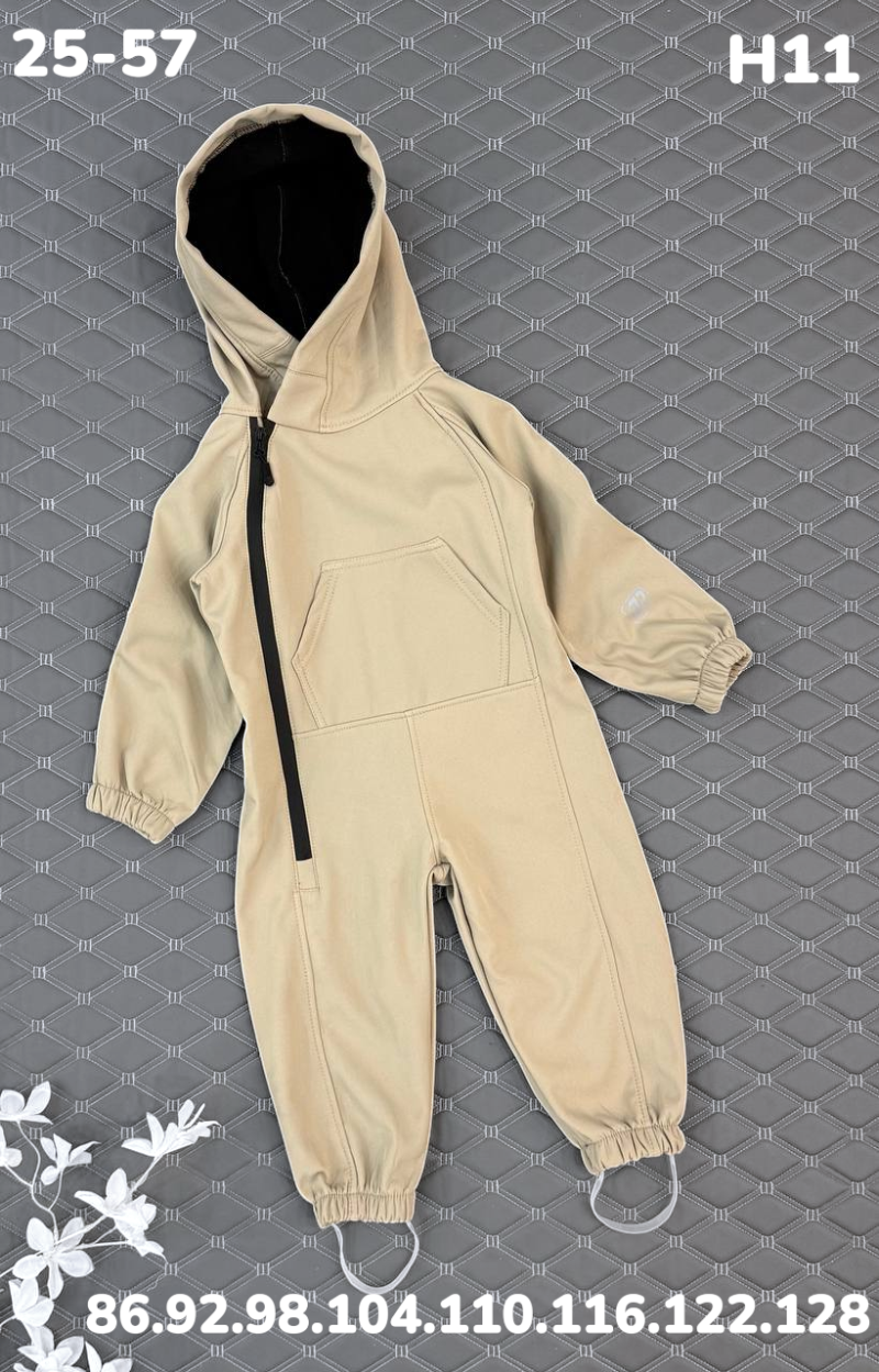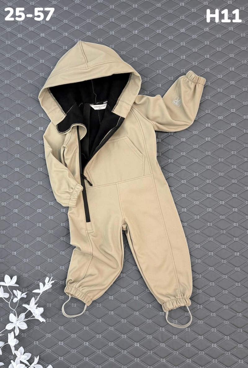 Детский комбинезон из ткани softshell (софтшелл) с водонепроницаемой дышащей мембранной ткани.
