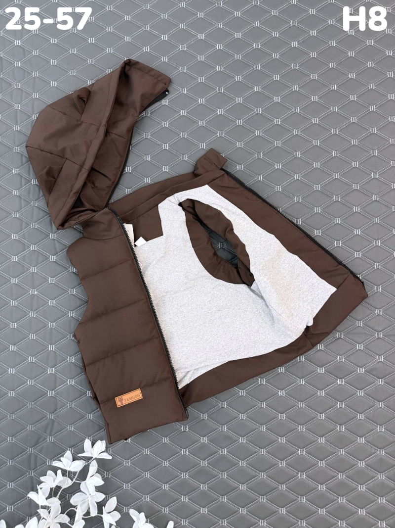 Внутри жилета на груди и спинке трикотажная подкладка создает дополнительный слой утепления.