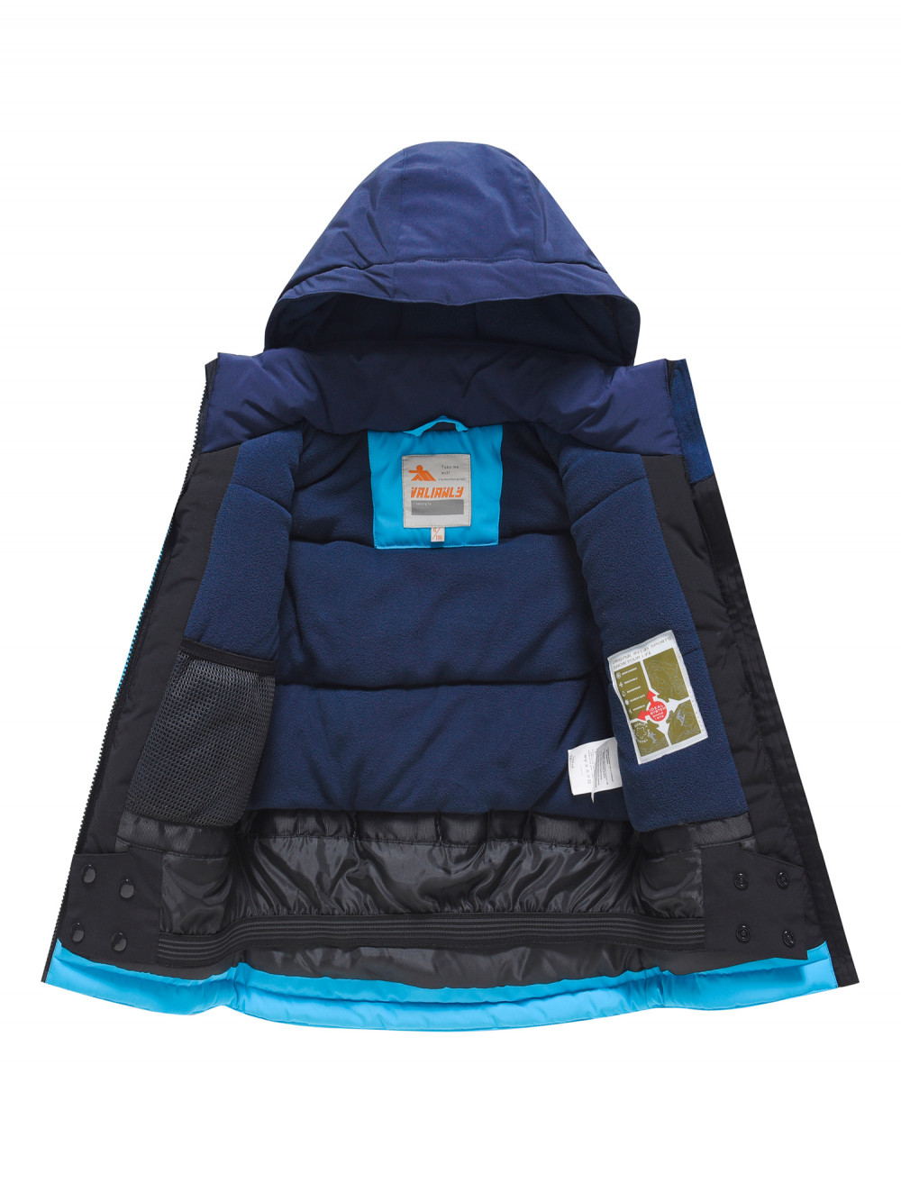 Сетчатый карман внутри куртки удобен для хранения мелких предметов, а снегозащитная юбка на куртке предотвращает попадание снега под одежду.