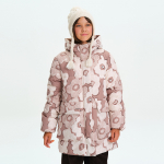Состав: 100%полиэстер+мембрана, вставка: 100%нейлон, подклад: 100%полиэстер, утеплитель: феллекс 100%полиэстерОписание: Комбинезон зимний детский из мембранной ткани для девочки. Модель свободного объёма с рукавами кроя реглан - ребёнку комфортно и не стесняет движения. На внешнюю поверхность материала нанесена водоотталкивающая пропитка (DWR), она задерживает грязь и влагу снаружи — ребёнок не промокнет от снега, а комбинезон легко отстирается. Также есть дополнительная пропитка на внутренней стороне ткани — для более надёжной защиты от промокания. Капюшон двухшовный, что обеспечивает анатомически правильную форму и комфортную посадку по голове. Капюшон не отстегивается, предусмотрена регулировка объема эластичными шнурами с пластиковыми стопперами. Внешний край капюшона декорирован мягким искусственным мехом, по текстуре напоминающим «барашка». Из этого же материала выполнена внутренняя подкладка капюшона, она комфортная, тактильно приятная. Удобная центральная застёжка на тракторную молнию. Тканевый стоппер защищает подбородок от зажима молнией. Фиксирующая строчка предохраняет планку от «заедания» в процессе застёгивания. Комбинезон тёплый — для оптимальной защиты от ветра и холода центральная молния дополнительно закрыта ветрозащитной планкой на кнопках и липучках (велькро). Спинка по талии присборена на внутреннюю резинку — комбинезон для девочки зимний безупречно садится по фигуре и не выглядит мешковато. Внутри комбинезона эластичные лямки — есть возможность снимать только верхнюю часть в помещении. Карманы с боковым входом закрываются на водонепроницаемую молнию со скрытыми звеньями — содержимое карманов не промокнет от снега во время активных игр на свежем воздухе. Внутри карманы утеплены мягким флисом. Замок дополнен тканевыми стопперами, что предохраняет его от разрыва. На пуллере эластичный запаянный шнур — ребёнку легко открывать и закрывать даже в варежках. Манжеты рукавов и брючин на комфортных широких резинках, это предохраняет от попадания внутрь снега. На муфтах брюк антискользящая резинка. Комбинезон дополнен съёмными силиконовыми штрипками. Область колен и нижняя часть спинки усилены более плотной тканью — можно смело кататься с горки и ползать на коленках сколько захочется. В каждом изделии нейм-лейбл! Ребёнок не потеряется и не потеряет комбинезон! Световозвращающие канты в проймах переда и спинки — безопасность в тёмное время суток. Модель красивого трендового цвета декорирована милым девичьим принтом. Комбинезон на молнии неприхотлив в уходе — ухаживать согласно указанным на вшивных ярлыках рекомендациям. Изделие выполнено из полиэстера с мембраной — оно не только защищает от холода и влаги, но и хорошо пропускает воздух, давая коже ребёнка дышать. Подкладка из мягкого, тёплого и дышащего флиса (по переду и спинке). В рукавах и штанинах подкладка из тонкого и гладкого полиэстера — благодаря этому ребенку легко надевать комбинезон, руки и ноги не путаются в рукавах и штанинах, а легко проскальзывают. Зимний комбинезон детский идеален для маленьких девочек дошкольного и младшего школьного возраста. Рекомендуемый температурный режим: не ниже минус 25 градусов. В изделии использован один из высокотехнологичных утеплителей — феллекс 260 г/м2. Дышащие свойства мембраны: не менее 30