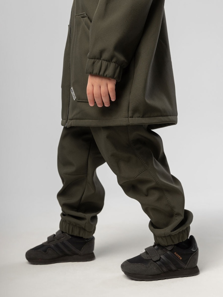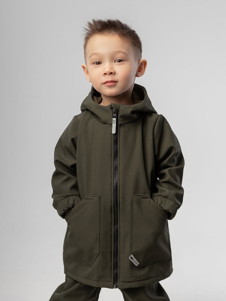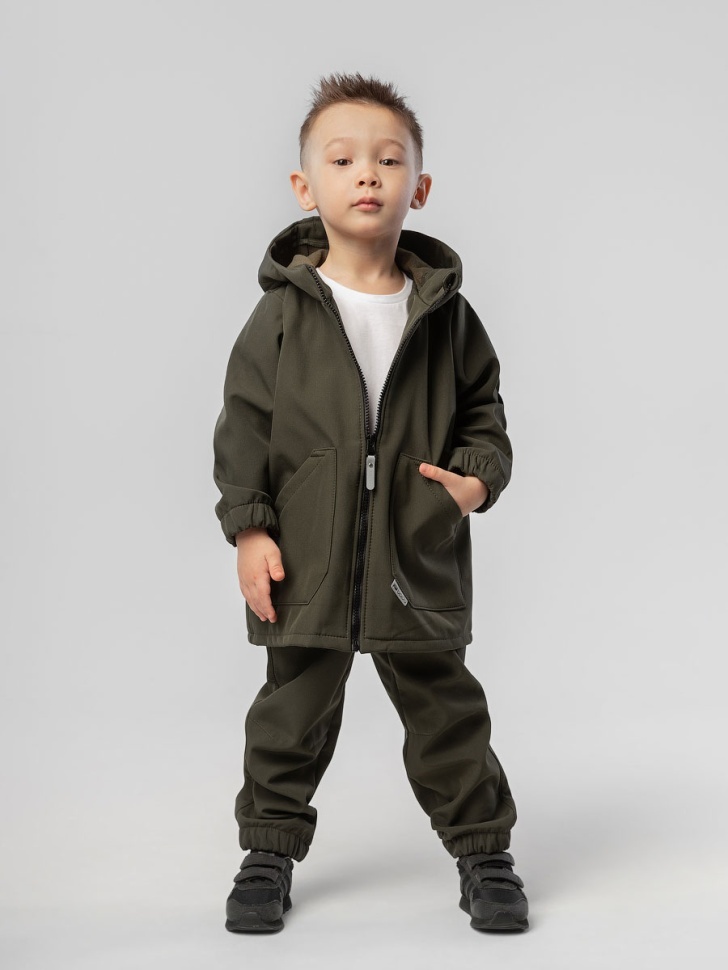 Материал софтшелл Состав 100% полиэстер Демисезонный ветронепроницаемый и дышащий костюм из материала softshell. Водо- и ветронепроницаемый материал softshell гарантирует комфорт в такую изменчивую весеннюю и осеннюю погоду. На куртке накладные карманы, на молнии светоотражающий пуллер, защитная планка, несъемный капюшон. Брюки - джоггеры, пояс - эластичная резинка, низ изделия - манжеты. Температурный режим от +5 до +15 гр., в зависимости от индивидуального теплообмена ребенка и промежуточного слоя одежды.