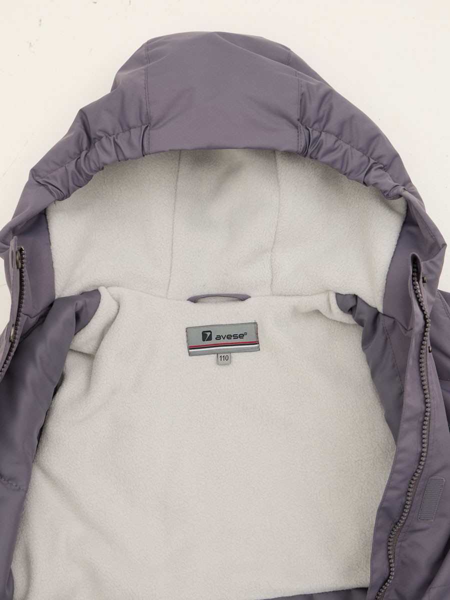 Куртка прямого силуэта, с втачным капюшоном. По талии в куртке кулиса с резиновым шнуром для регулировки прилегания. Центральная застёжка на молнию, закрыта центральной планкой на кнопках и липучках. На полочках прорезные карманы с листочками на потайных кнопках. Низ рукавов на резинке. Внутренний капюшон из флиса с утеплителем. Подкладка комбинированная, настегана на утеплитель.
