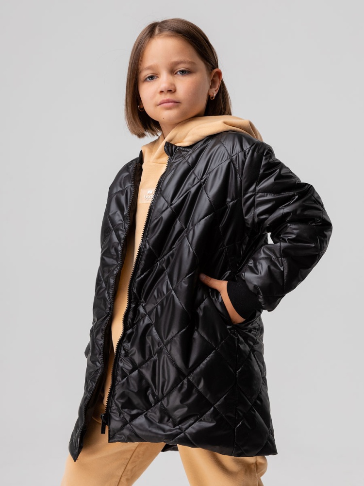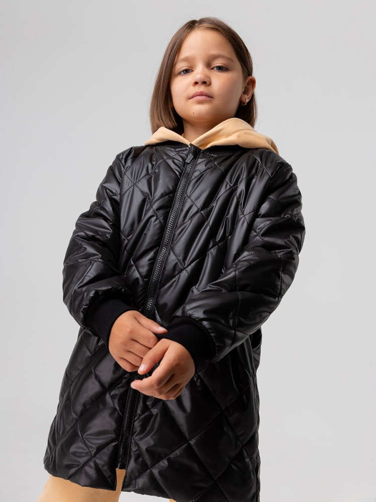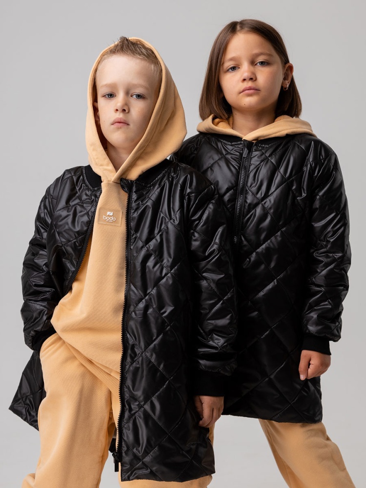 Материал Фитсистем Состав 100% полиэстер Стеганый удлиненный бомбер для детей. Детали: рукава на манжетах, карманы в боковых швах, застежка - молния. Внутри изделия легкий гипоаллергенный современный утеплитель Hetta micro, надежная защита от холода при минимальном объеме, сохраняет упругость и форму после многократных стирок. Материал верха: Fitsystem 100% полиэстер, утеплитель Hetta micro 100 г/кв.м, подкладочный материал кулирная гладь 100% хлопок