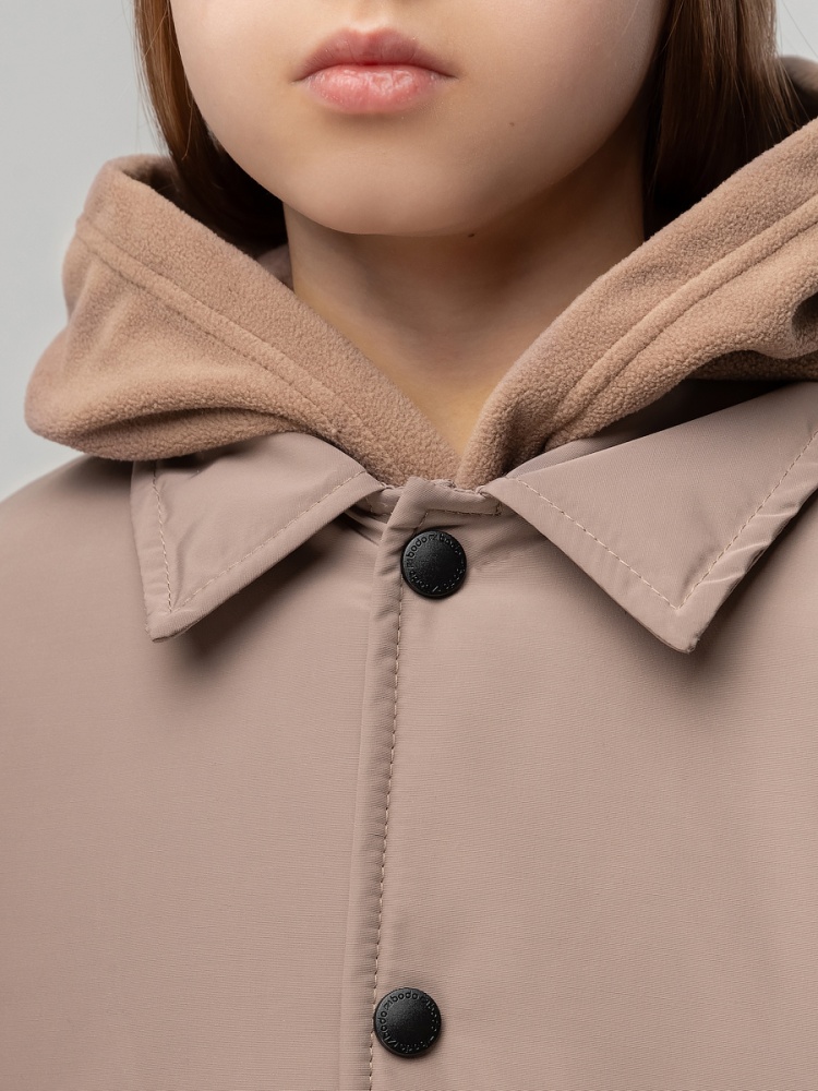 Материал Фитсистем Состав 100% полиэстер высота упаковки, мм 4 Куртка для детей дошкольного возраста. Из плотного курточного материала Fitsystem , с матовым эффектом, влагозащитная, воздухообменная и ветрозащитная. Внутри изделия легкий гипоаллергенный современный утеплитель Hetta micro 100 г/кв.м, подкладочный материал кулирная гладь 100% хлопок. Температурный режим от +15 до -5, в зависимости от индивидуального теплообмена ребенка. Куртка прямого силуэта, с центральной бортовой застёжкой на кнопки. Куртка со спущенным плечом и втачными рукавами с притачной манжетой с внутренней резинкой. Воротник отложной со стойкой. На полочке расположены накладные карманы. Низ прямой.