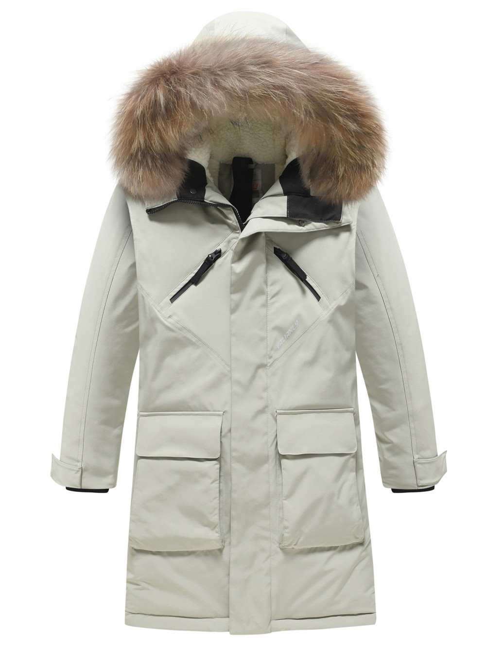 - Съемная меховая опушка: Из натурального меха, добавляет стильный акцент и дополнительное тепло.