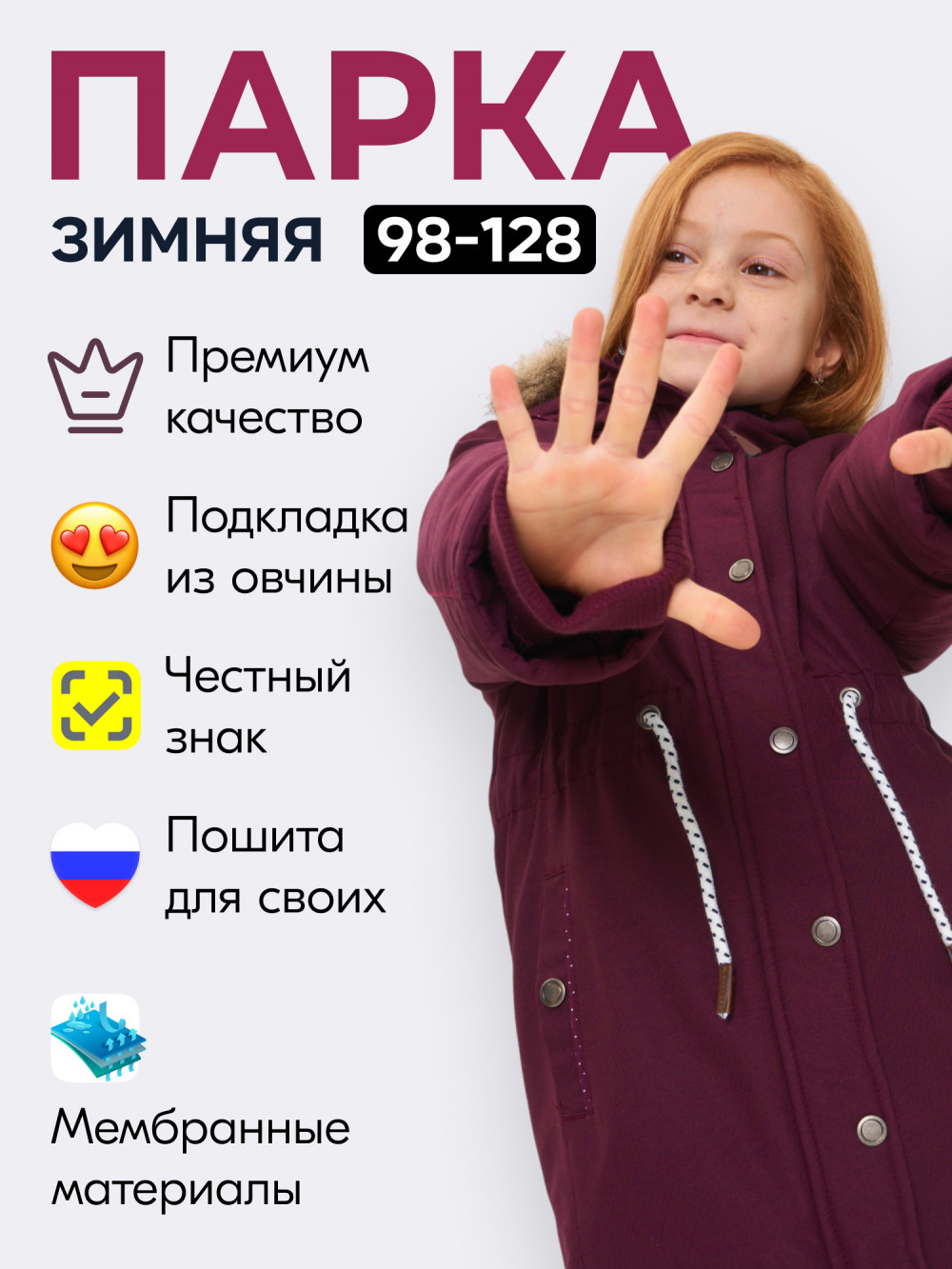 Зимняя детская парка - идеальный выбор для маленьких модниц! Она обеспечит комфорт и защиту вашей маленькой принцессы в холодное время года. Несъемный капюшон со съемной опушкой на кнопках убережет голову и лицо ребенка от ветра и снега. Подкладка из искусственного меха подарит дополнительное тепло, комфорт и уют. Ветрозащитная планка на кнопках и защита подбородка обеспечат плотное прилегание к шее и защитят от сквозняков. Внутри куртки-парки имеется удобный прорезной карман для хранения мелких предметов, а боковые карманы на кнопке сохранят руки в тепле. Шнурок утяжка на талии позволит подогнать парку по фигуре девочки, а трикотажные манжеты на рукавах предотвратят попадание холодного воздуха. На левом плече куртки красуется логотип бренда, что добавит стиля и узнаваемости. Эта функциональная и стильная куртка-парка подростковая для девочки станет любимой вещью в гардеробе вашей маленькой модницы! Перед использованием следует отпарить изделие, чтобы придать ему более опрятный вид и расположить утеплитель равномерно. Приятных покупок!