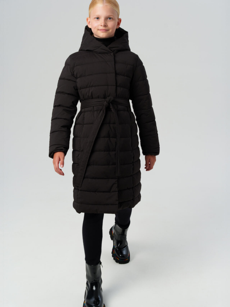 Классическое черное демисезонное школьное пальто с капюшоном для девочки подростка от PlayToday — стильная и тёплая модель на прохладную осень с температурой до -5°C. Универсальное детское пальто надёжно защищает от ветра и осадков благодаря ветро- и влагозащитной ткани, при этом выглядит элегантно и аккуратно — идеальный выбор для школы.Преимущества модели:+ температурный режим до -5°C+ наполнитель пух/перо 90/10+ гладкая подкладка+ несъёмный капюшон+ пояс на талии+ два кармана на молнии+ внутренний карман на липучке+ прямой крой+ непромокаемый верх+ универсальный черный цветЭто демисезонное подростковое пальто для девочек создано с акцентом на комфорт и стиль. Лёгкий пуховый наполнитель сохраняет тепло, не утяжеляя образ. Материалы подобраны так, чтобы ребёнку было удобно и сухо в любую погоду — будь то школьные занятия, прогулки или поездки.Стильное школьное пальто для подростков подчёркивает фигуру за счёт пояса, а лаконичный силуэт легко вписывается в деловой и повседневный гардероб. Модель не сковывает движений и отлично смотрится как с юбками и платьями, так и с брюками.Совет по стилю: сочетайте это утепленное нарядное пальто для школьницы с вязаным шарфом, беретом и сапогами от PlayToday — получится элегантный и практичный комплект для школы и городских прогулок.Модель представлена на рост 122-170 см — подходит для девочек от 7 до 16 лет.Модное осеннее черное пальто в школу для девочки от PlayToday — идеальное сочетание тепла, лёгкости и классического стиля. Выбор для тех, кто ценит комфорт, эстетику и надёжность в любую погоду.