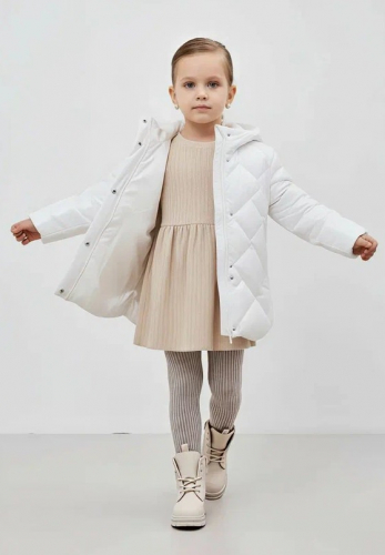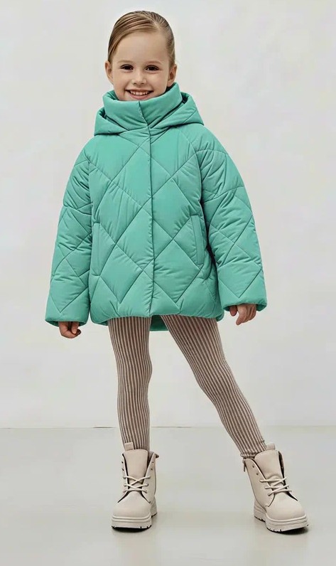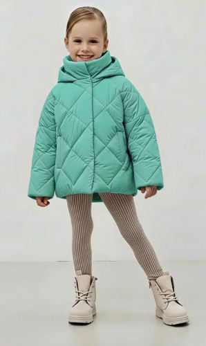 Куртка прямого силуэта. Рукав втачной, на основе цельнокроенного. Застежка центральная на тесьму - молнию, с цельнокроеной верхней ветрозащитной планкой, застегивающейся на потайные кнопки. Воротник отложной , с отрезной стойкой. На переде выполнены боковые вертикальные прорезные карманы с листочками. Изделие стеганое ромбами. Капюшон пристегивающийся на молнию. Край капюшона в центральной части собран на резинку