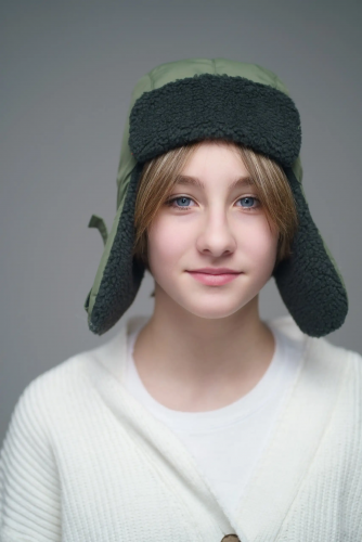 Шапка для детей из мембранной ткани с водонепроницаемым покрытием на утеплителе, с отделкой из искусственного меха. Для лучшего прилегания в области затылка резинка. Шапка застегивается под подбородком с помощью паты с липучкой. Подкладка из фланели - 100% хлопок, на утеплителе.