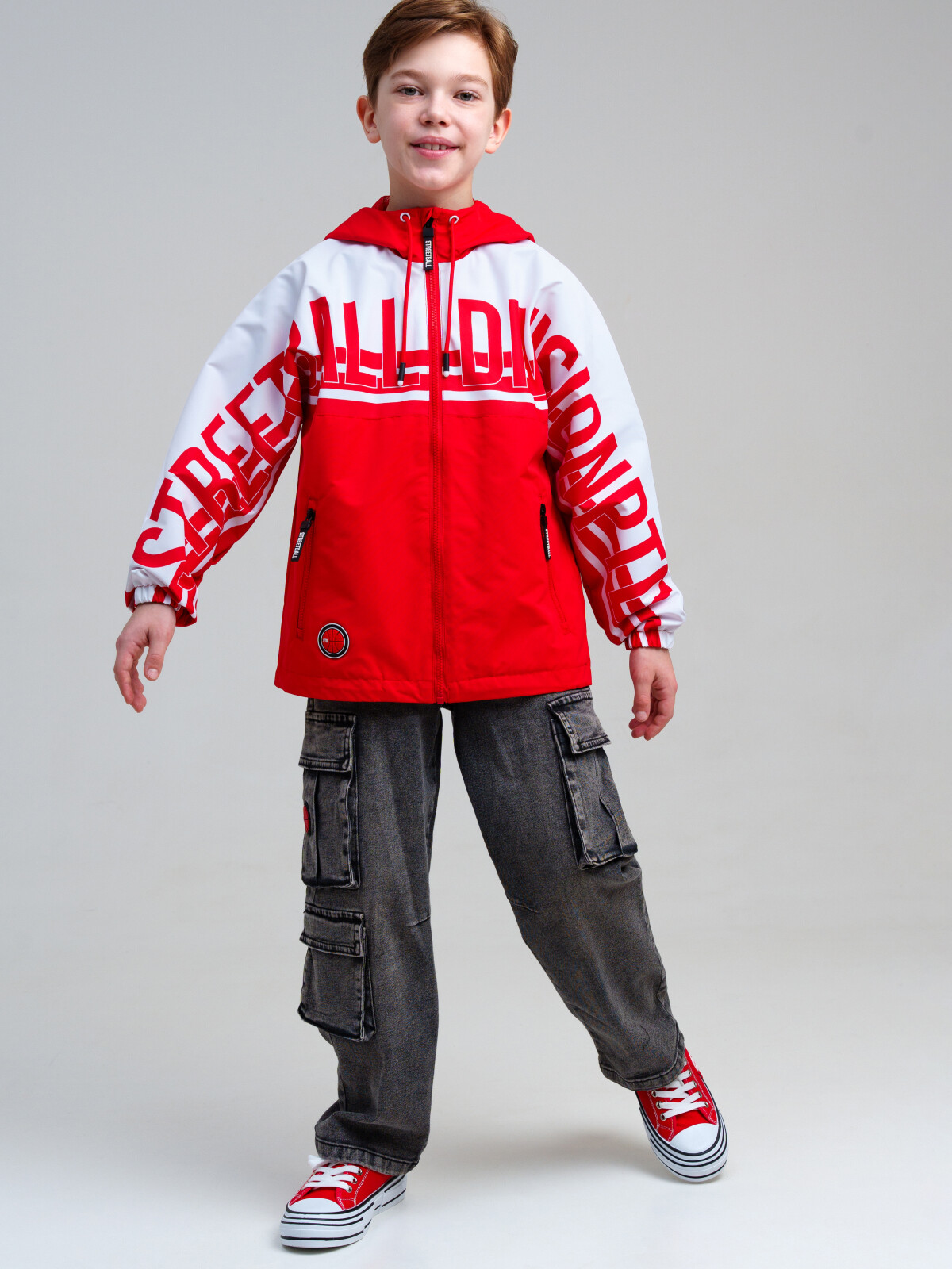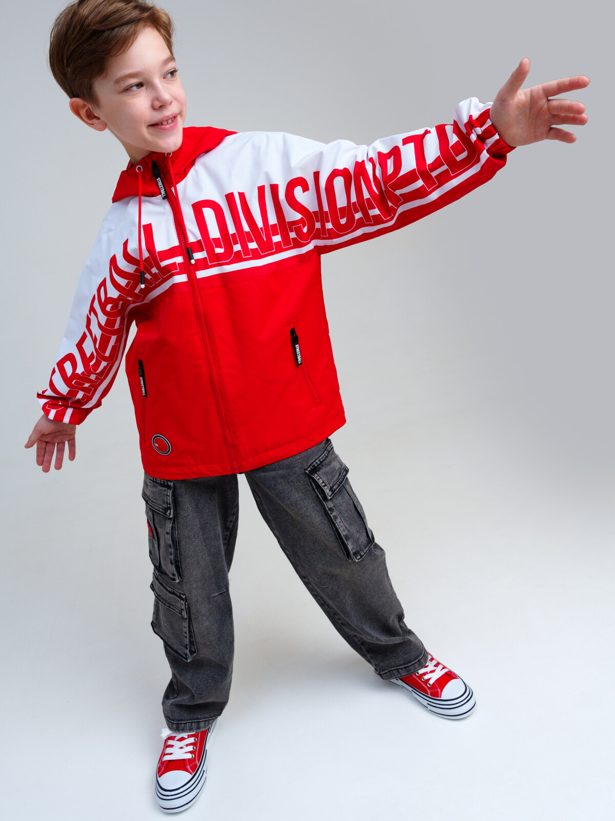 Куртка текстильная с полиуретановым покрытием для мальчиков (ветровка) красный,белый 12511013