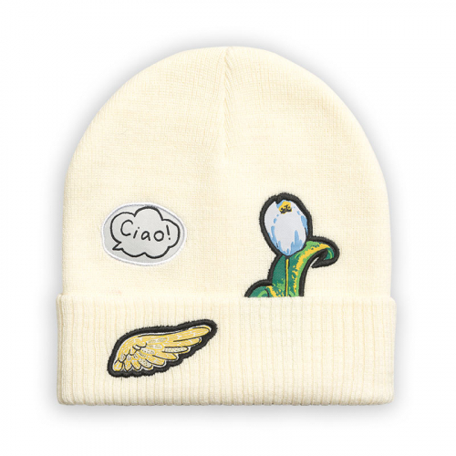 Состав: 100%акрил, подклад: 100%полиэстерОписание: Вязанная шапка из акрила с отворотом и подкладом из флиса для девочки. Идеальная посадка по голове, плотно прилегает к ушам, защищает от холода и ветра. Шапку украшает необычный фактурный рисунок вязки, который имитирует фактуру лесных шишек. Цвет шапки - актуальный цвет вареной сгущенки. Сбоку резиновая нашивка в тон. Перевод "культивируй доброту".