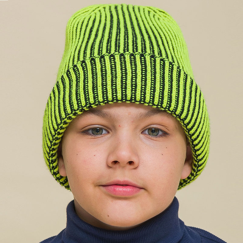 Состав: 100%акрил, подклад: 100%полиэстерОписание: Стильная шапка с отворотом для модных мальчиков и девочек! Шапка из 100% акрила — мягкого, тёплого и эластичного. Изделия из акрила легко стирать, они не мнутся, не растягиваются, сохраняют отличный внешний вид надолго. Прекрасные терморегулирующие свойства акрила позволяют шапке сохранять тепло при низких температурах. Подкладка из флиса приятна на ощупь и обеспечивает дополнительную защиту от холода. Шапка связана фактурной английской резинкой в актуальном контрастном сочетании жёлтого и чёрного цветов. Шапка плотно прилегает к голове ребёнка, не сползает, защищает уши от ветра и холода. Яркая шапка – отличный выбор для ребёнка! В ней вы никогда не потеряете его в многолюдных местах, увидите своё чадо издалека!