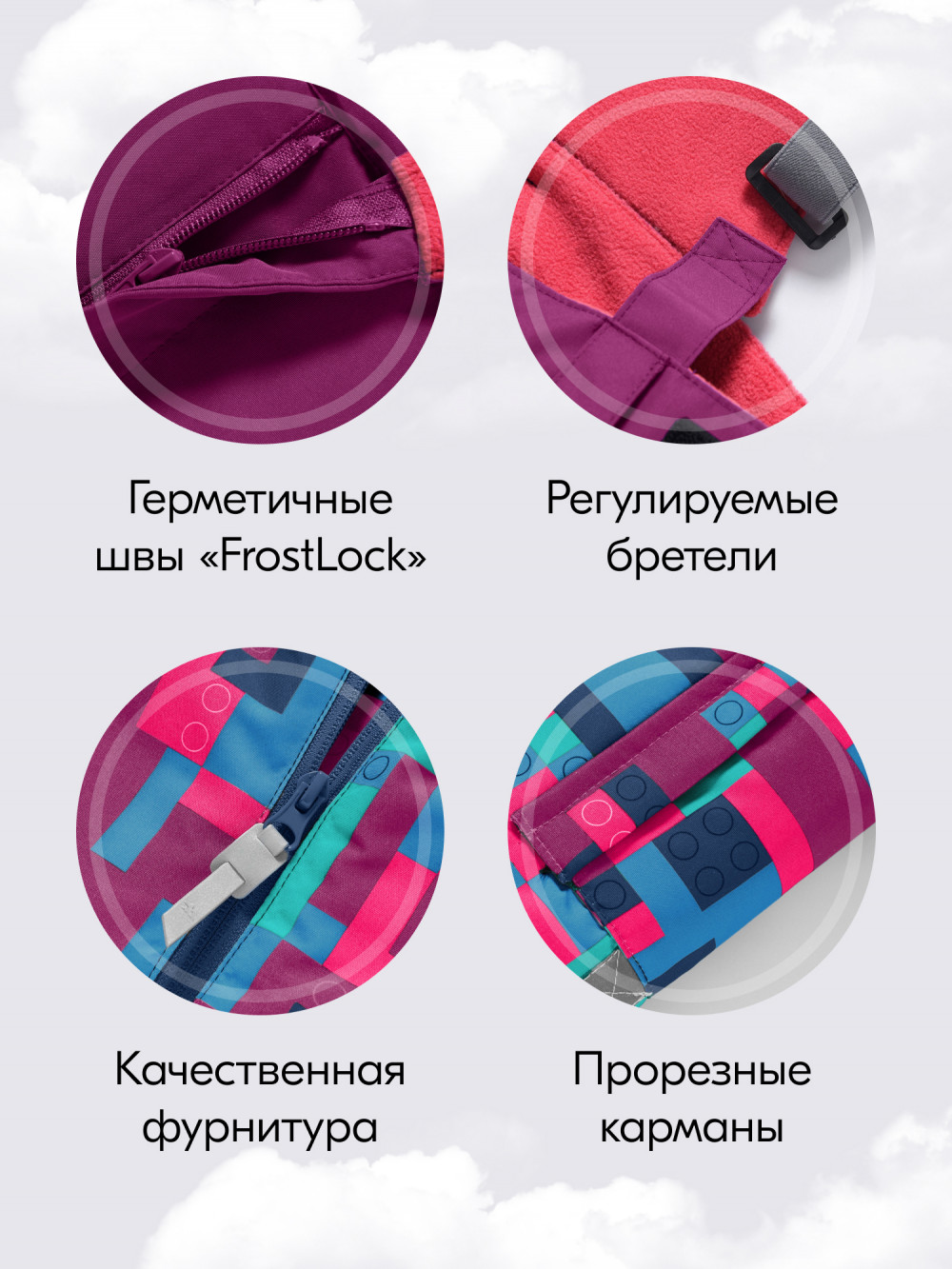 Брюки оснащены съемными и регулируемыми бретелями, что позволяет легко адаптировать их под рост и предпочтения молодой спортсменки. Утепленная флисом спинка гарантирует дополнительный комфорт в любых условиях. Утяжки на липучках в области талии позволяют идеально подогнать брюки, предотвращая попадание снега и холода. Дополненные прорезными карманами на молниях, брюки обеспечивают надежное хранение личных вещей во время катания.