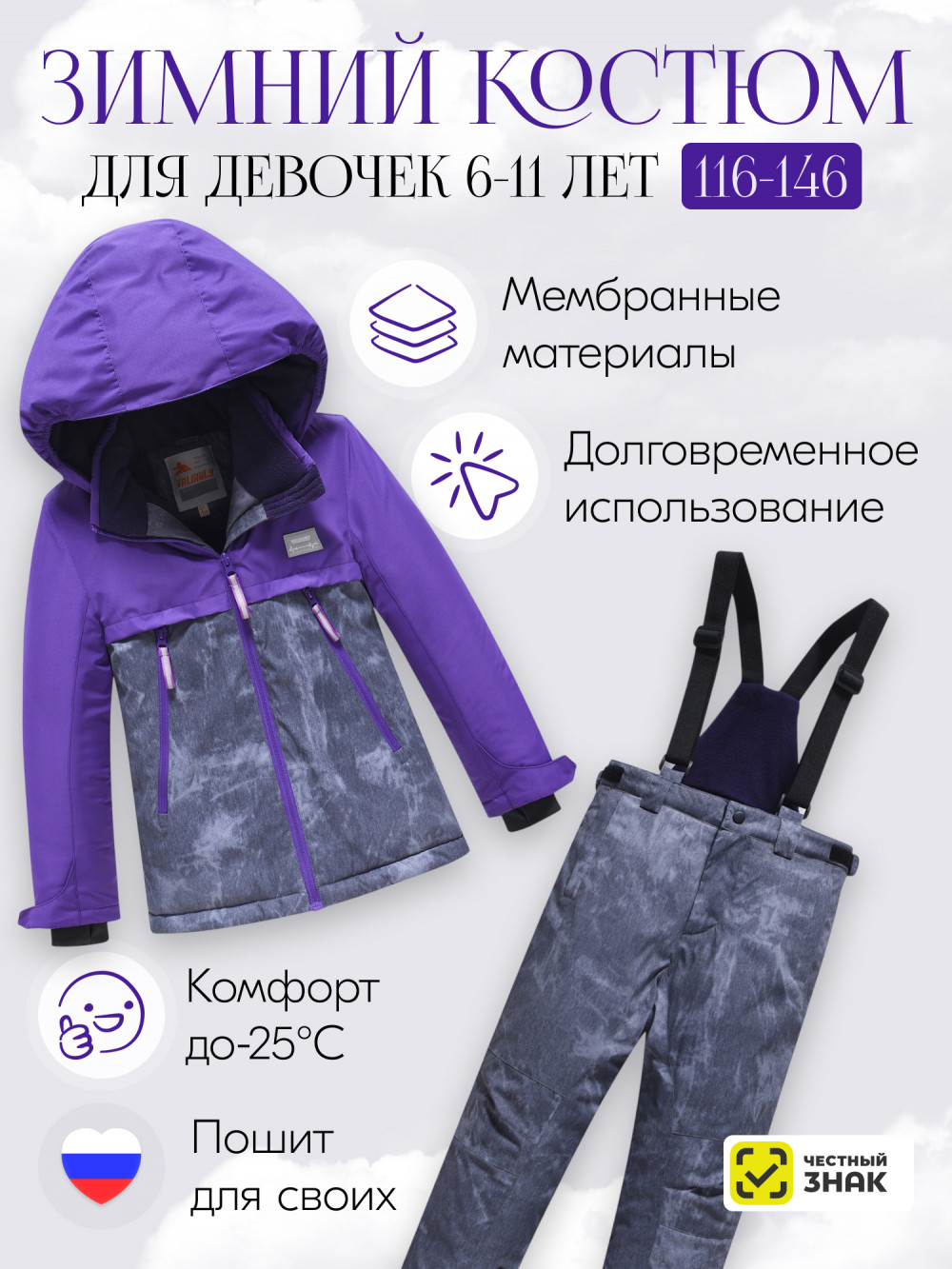 Представляем зимний горнолыжный костюм для девочки, который идеально сочетает стиль и функциональность! Этот комплект, состоящий из куртки и полукомбинезона, разработан для активных зимних приключений и обеспечивает максимальный комфорт на склонах.