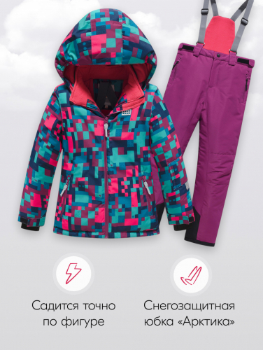 Зимний горнолыжный костюм для девочки, с комбинированным принтом, сочетает в себе стильный дизайн и высокую функциональность, идеально подходящий для активных зимних приключений!