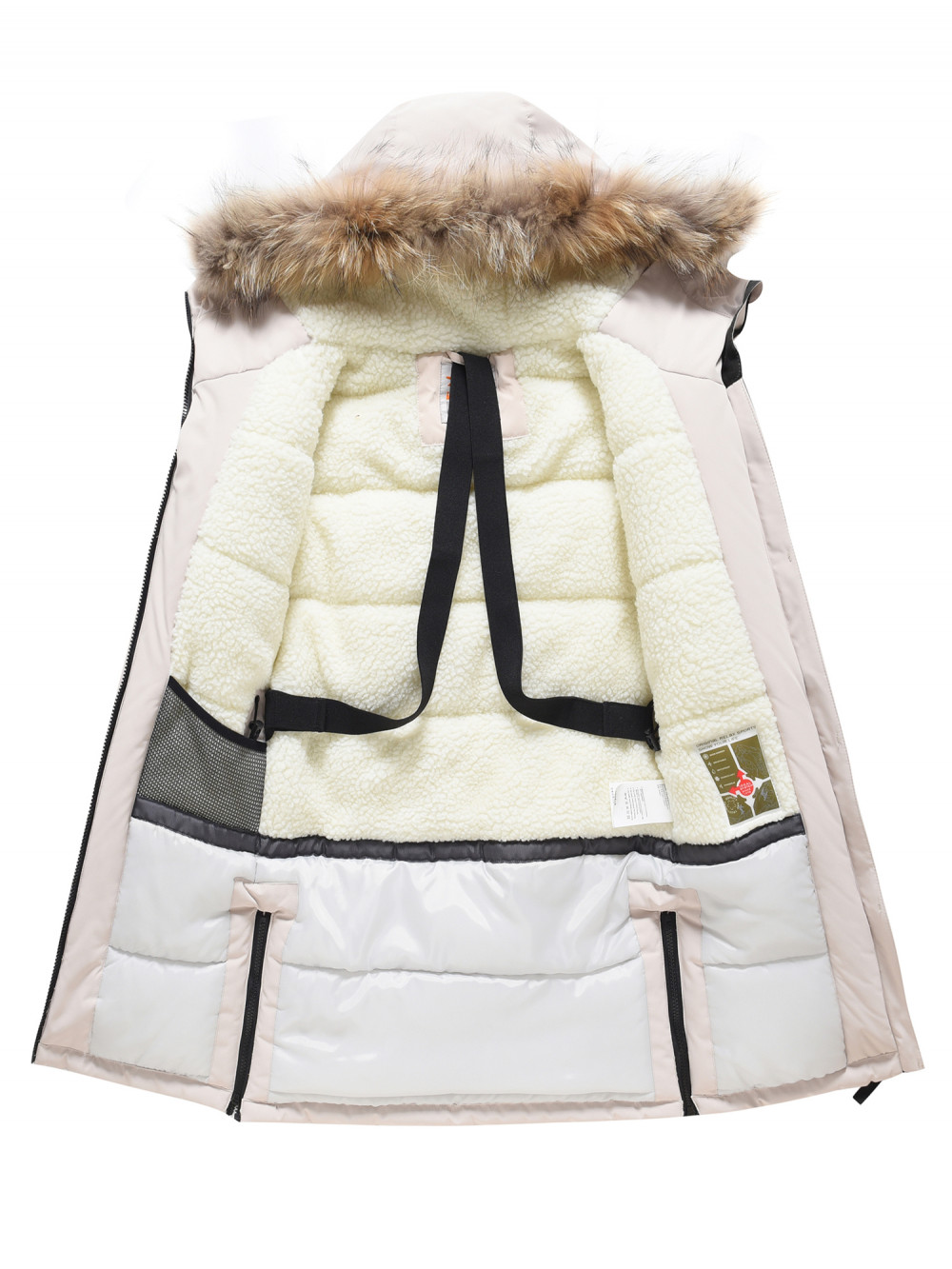 - Съемная меховая опушка: Из натурального меха, добавляет стильный акцент и дополнительное тепло.