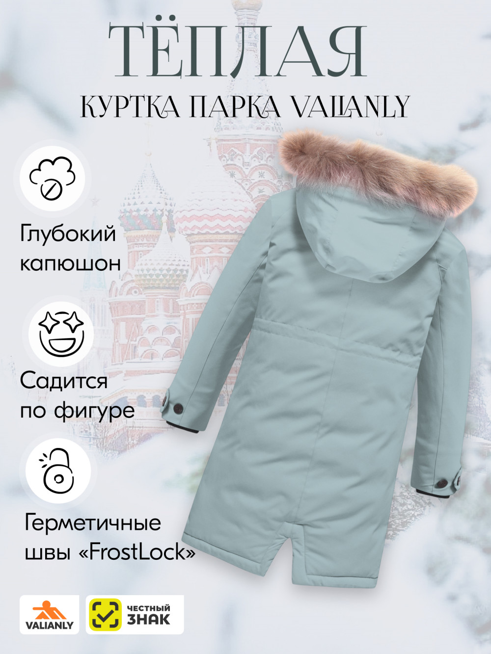 - Ветрозащитная планка на кнопках: Защищает от холодного ветра, сохраняя тепло внутри.