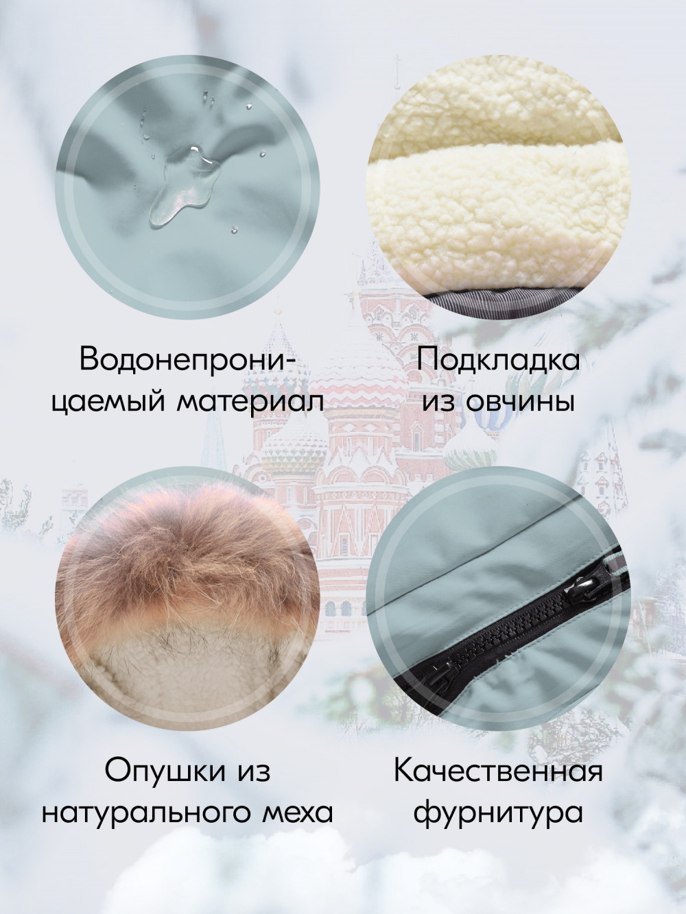 - Съемная меховая опушка: Из натурального меха енота, добавляет стильный акцент и дополнительное тепло.