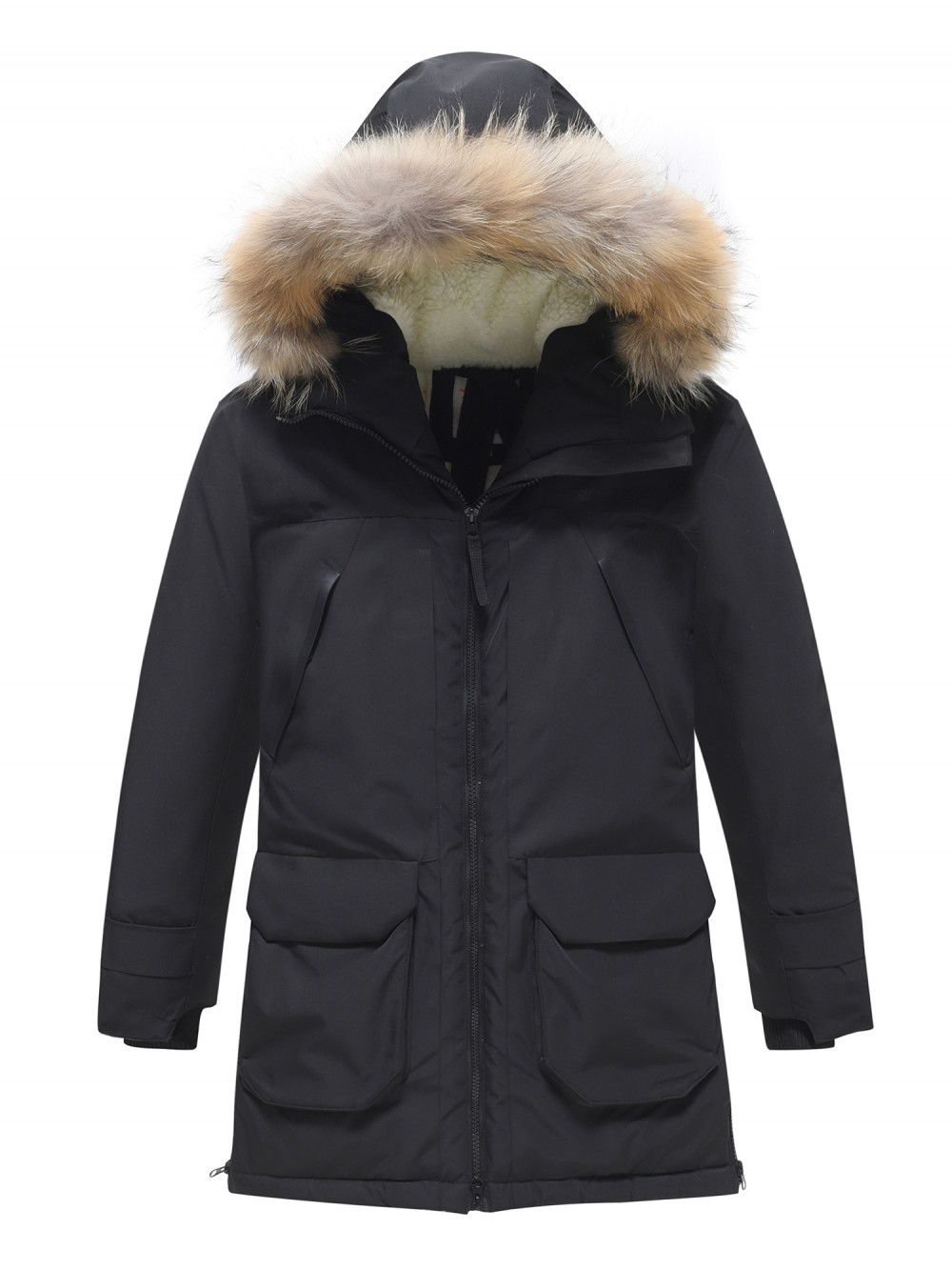 - Съемная меховая опушка: Из натурального меха, добавляет стильный акцент и дополнительное тепло.