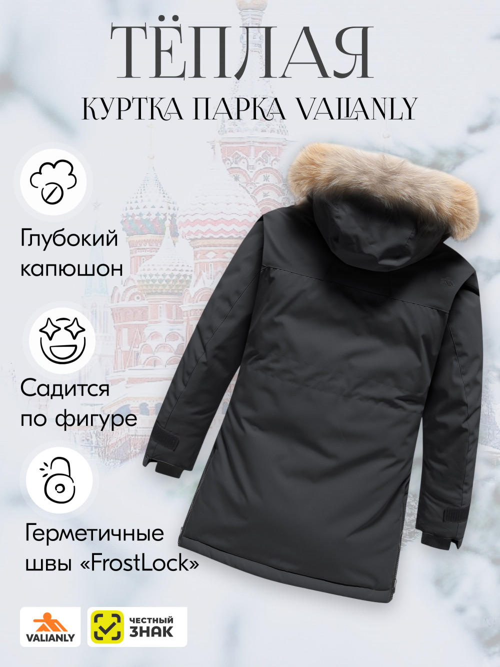 - Ветрозащитная планка на кнопках: Защищает от холодного ветра, сохраняя тепло внутри.
