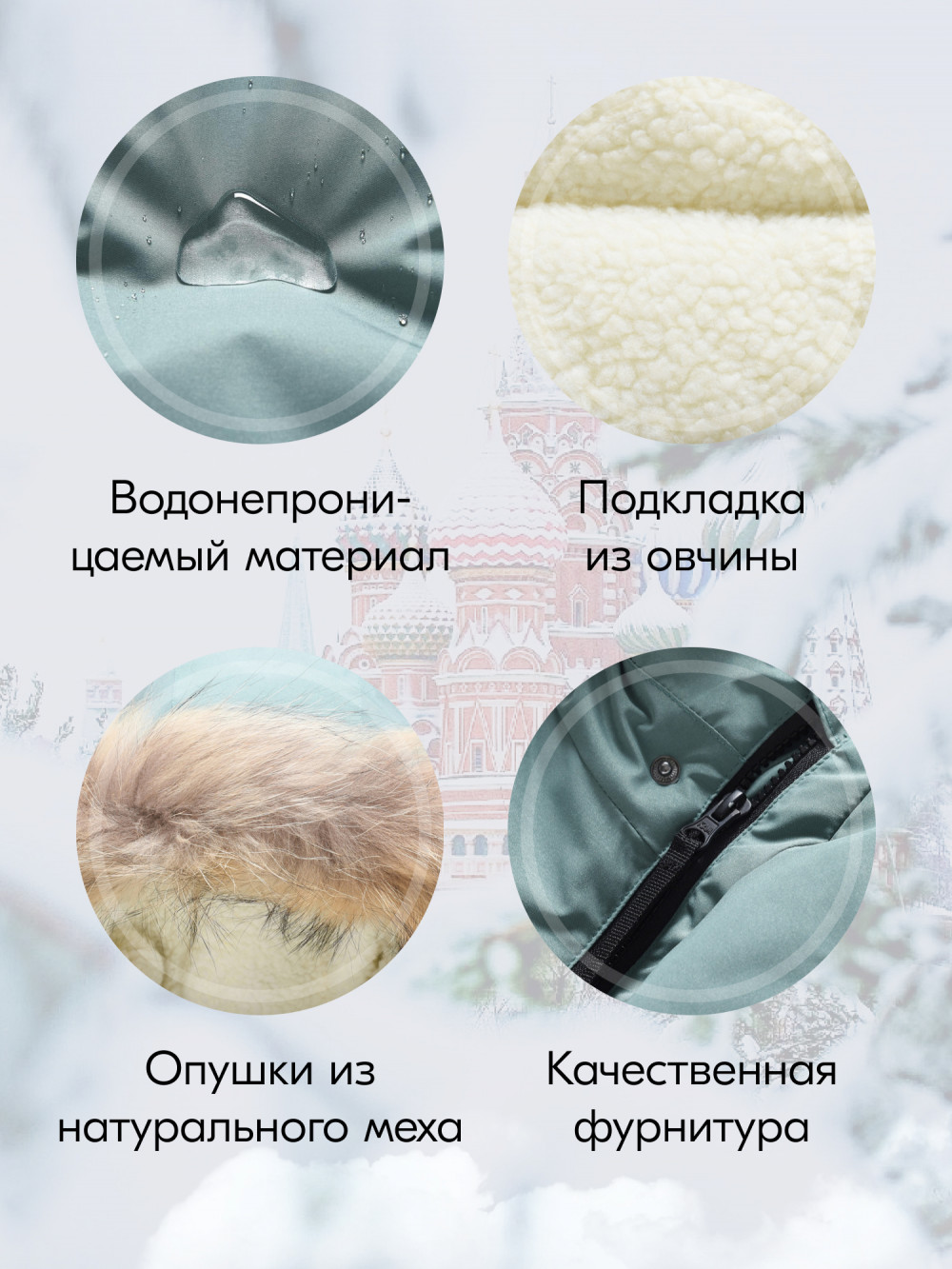 - Съемная меховая опушка: Из натурального меха, добавляет стильный акцент и дополнительное тепло.