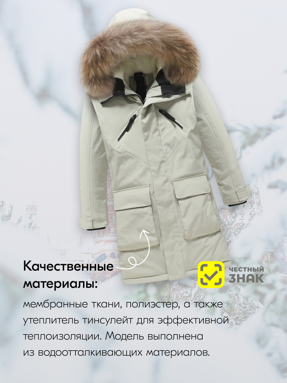 - Съемная меховая опушка: Из натурального меха, добавляет стильный акцент и дополнительное тепло.