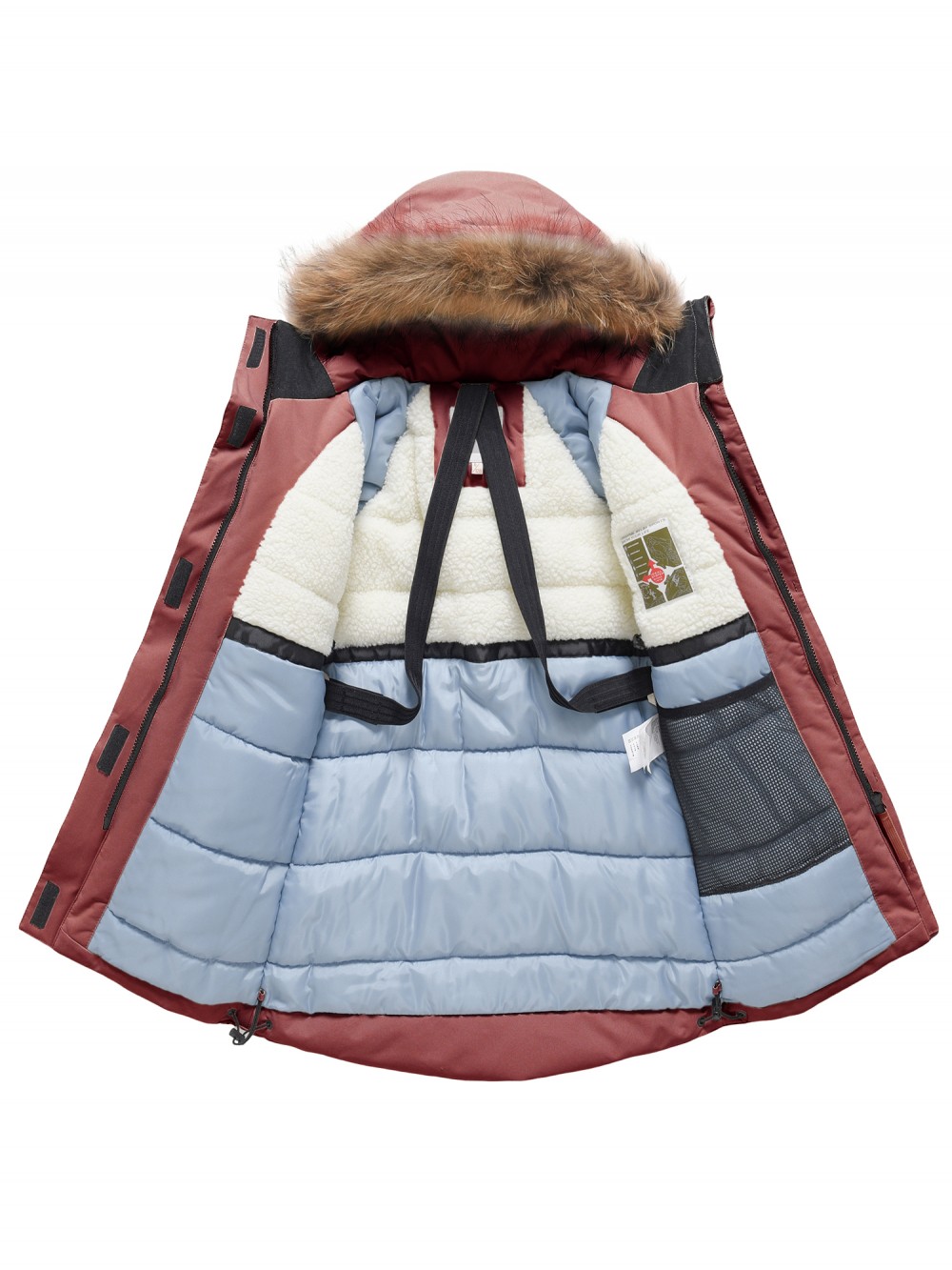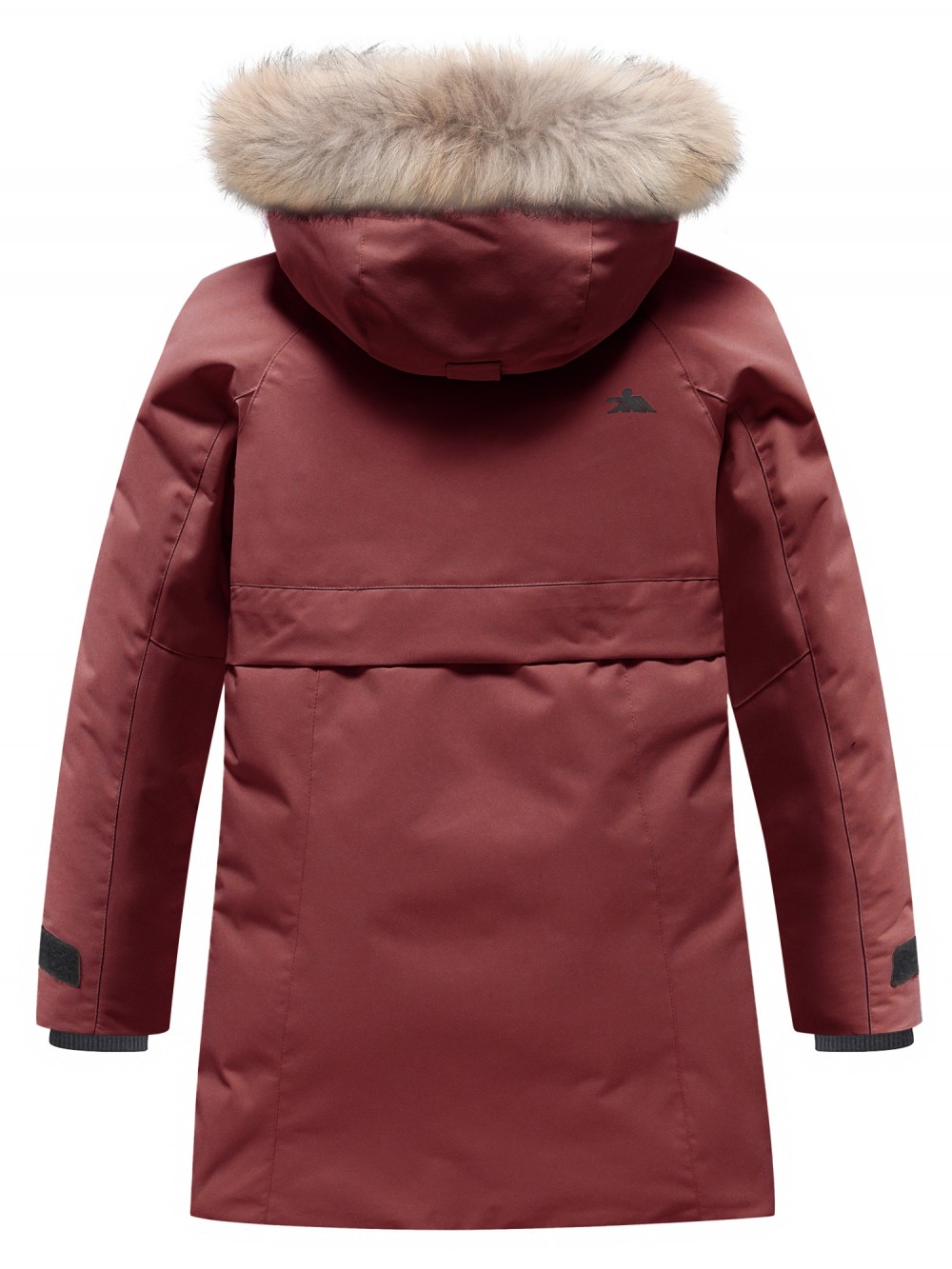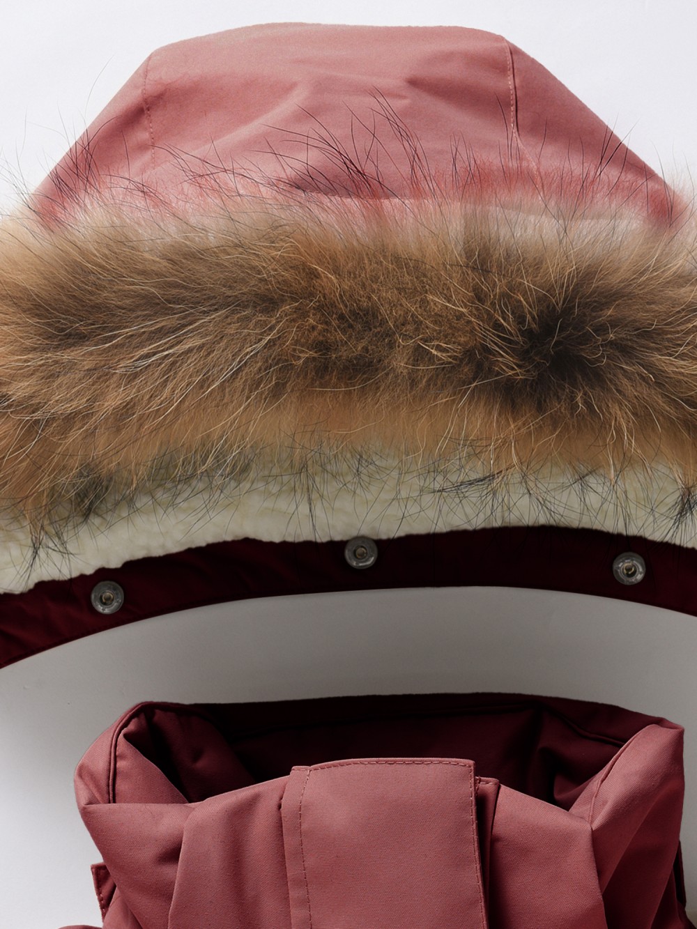 Капюшон с меховой отделкой надёжно защищает от ветра и снега, а фиксаторы на рукавах, по линии талии, на капюшоне и по низу парки помогают сохранить тепло и защитить ребёнка от продувания.