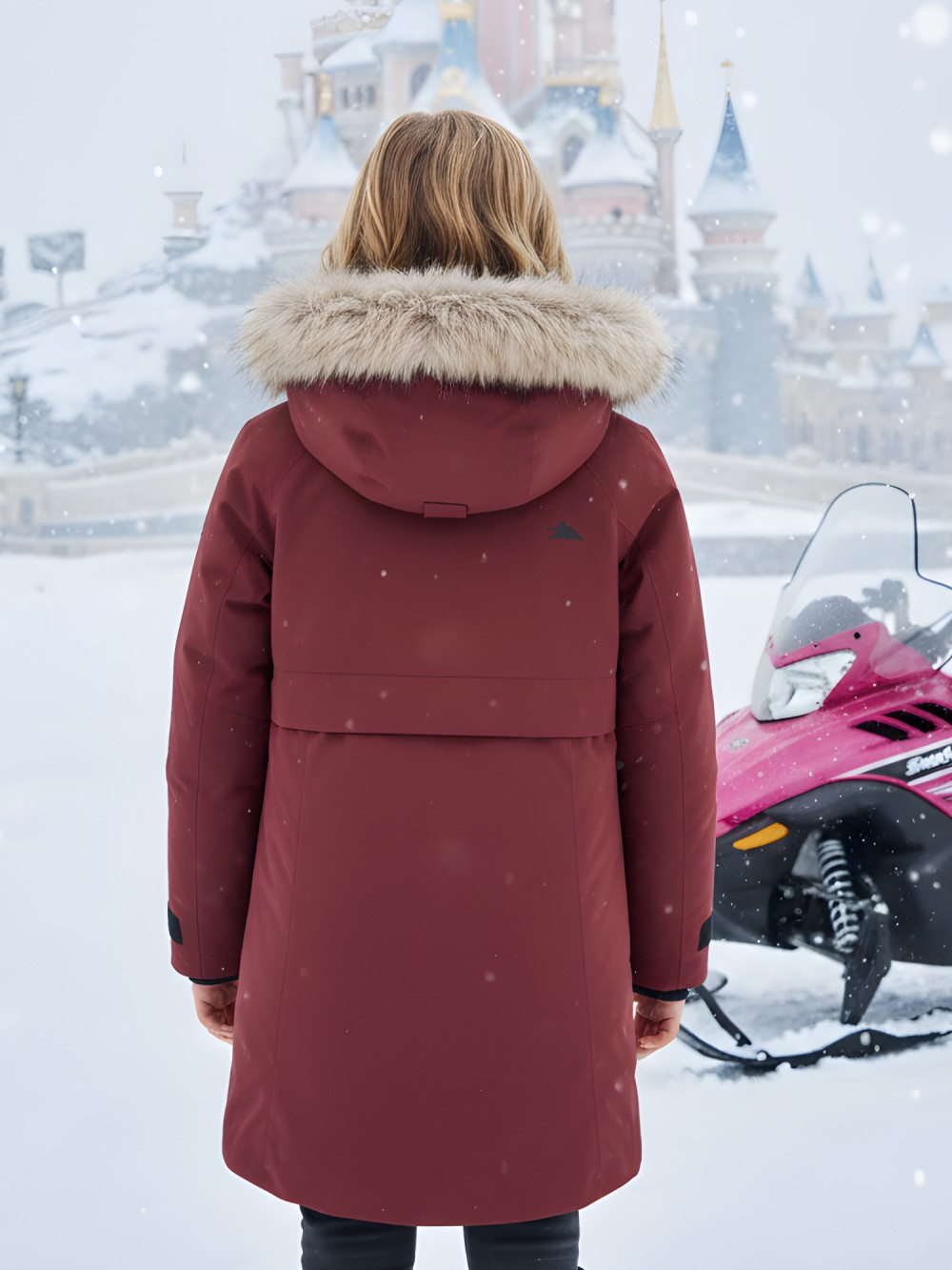 Капюшон с меховой отделкой надёжно защищает от ветра и снега, а фиксаторы на рукавах, по линии талии, на капюшоне и по низу парки помогают сохранить тепло и защитить ребёнка от продувания.