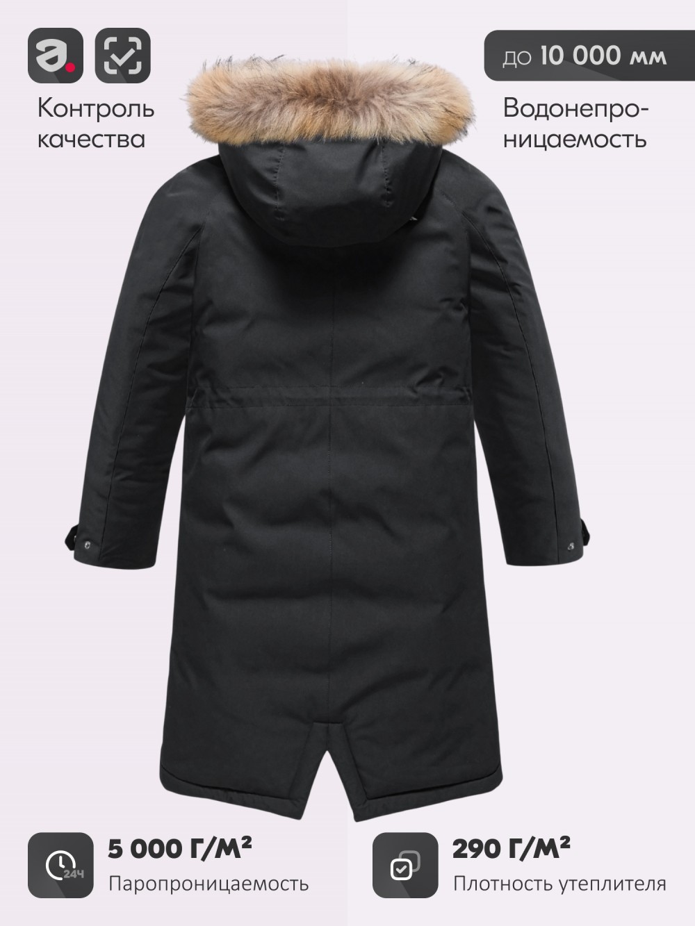 Удлинённый крой дополнен разрезом сзади для удобной ходьбы и активных движений. Надёжные карманы сохраняют вещи под рукой, а внутренние лямки позволяют носить парку на плечах в помещении — удобно в школе и торговых центрах.