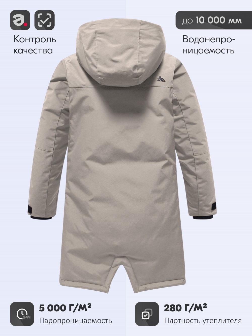 Зимняя парка для мальчика-подростка разработана с учётом всех требований к тёплой и практичной верхней одежде для холодного времени года. Свободный крой до колена обеспечивает удобство и свободу движений, модель одинаково комфортна как для школы, так и для повседневных прогулок. Верх выполнен из плотной износостойкой ткани с водоотталкивающими свойствами, а проклеенные швы надёжно защищают от ветра и влаги, сохраняя тепло внутри. Современный утеплитель тинсулейт с плотностью 280 г/м² поддерживает комфортный температурный режим и позволяет носить парку в диапазоне от +5 до –25 градусов.