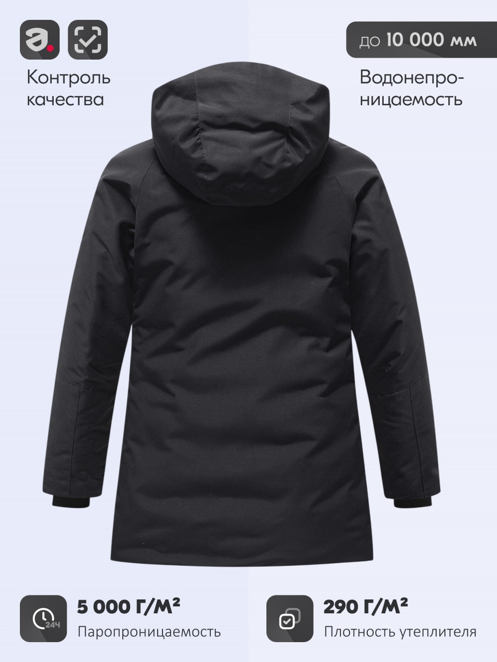 Особенности модели: ветрозащита, водоотталкивающий материал, гипоаллергенный материал, дышащий материал, с начесом, утягивающая модель