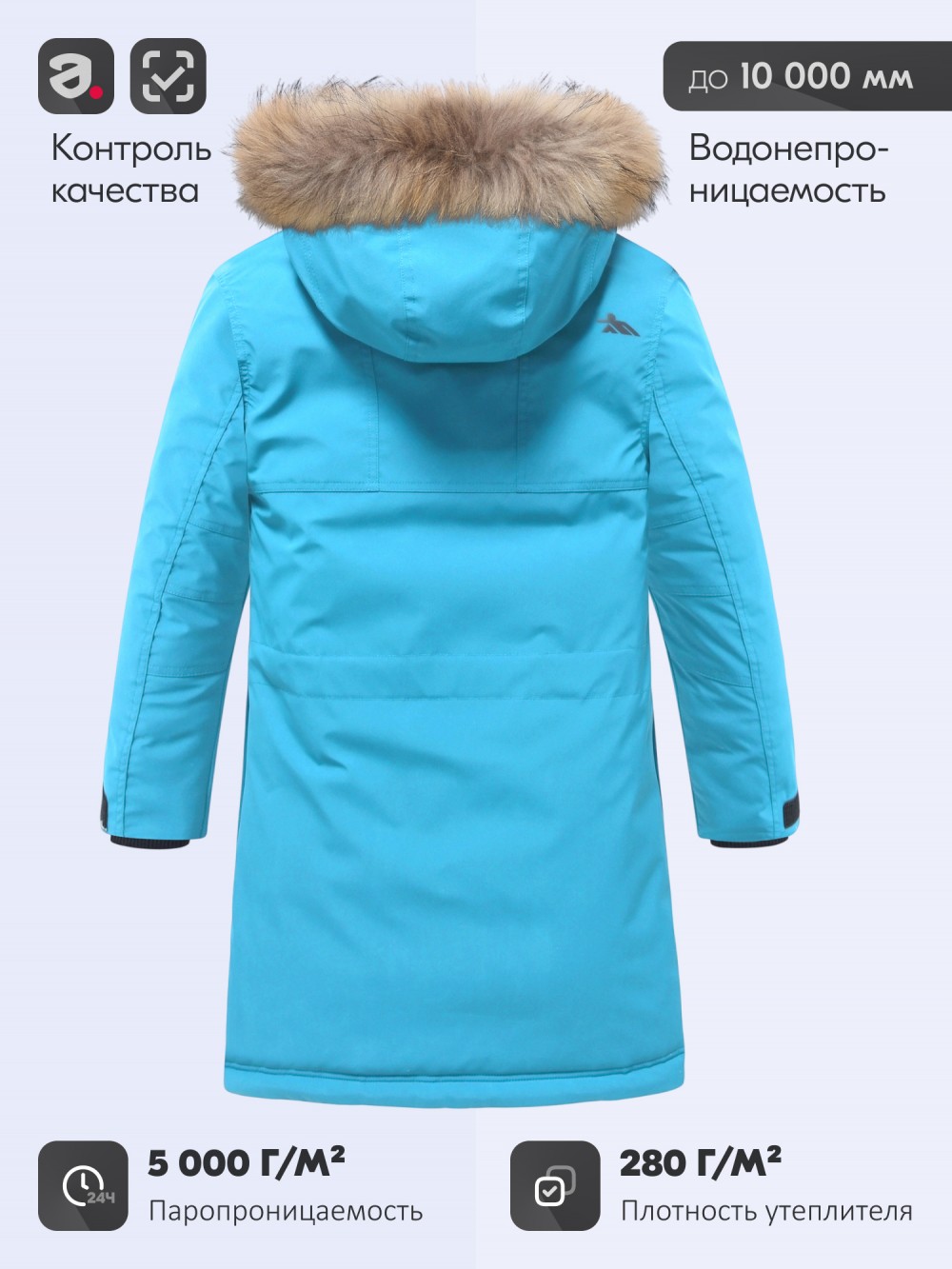 Светоотражающие детали и логотип со светоэффектом повышают безопасность ребёнка в тёмное время суток. Парка выполнена в универсальных цветах — синем, голубом и чёрном — и подойдёт как для школы, так и для повседневных прогулок.