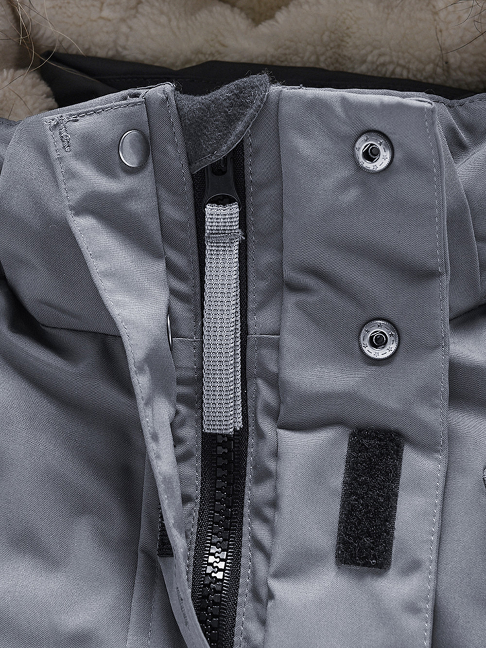 Конструктивность элемента: Съемный капюшон, съемная меховая опушка, светоотражающие элементы, трикотажные манжеты, фиксатор в талии, вместительные карманы на кнопках.