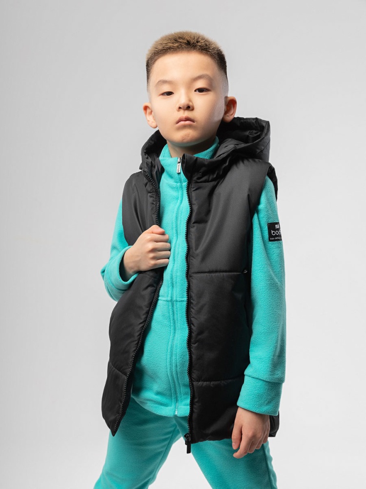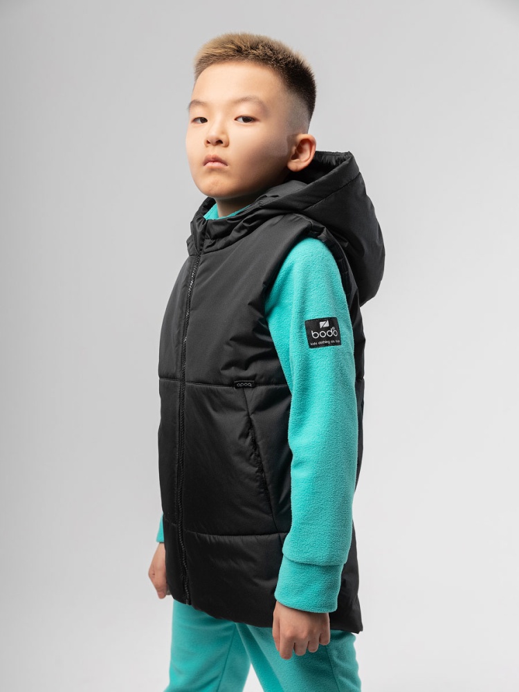 Материал Дюспо Состав 100% полиэстер высота упаковки, мм 5 Стильный жилет на молнии, по бокам прорезные карманы, несъемный капюшон.Материал жилета Дюспо воздухообменный и ветрозащитный. Материал верха: Дюспо 100% полиэстер, утеплитель Hetta Filt S2 150 г/кв.м, подкладочный материал кулирная гладь 100% хлопок