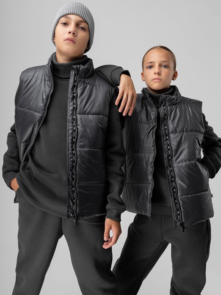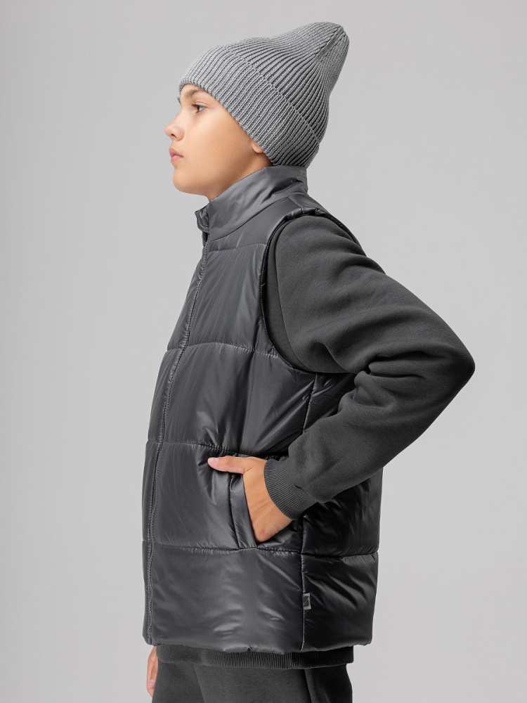 Материал Фитсистем стайл Состав 100% полиэстер высота упаковки, мм 4 Стильный жилет для детей школьного возраста. Материал FITSYSTEM имеет специальное водонепроницаемое и водоотталкивающее покрытие и пропитку, защищает от дождя, влаги и ветра. Материал верха: Fitsystem Style 100% полиэстер, утеплитель Hetta micro premium S4-K 150 г/кв.м, подкладочный материал кулирная гладь 100% хлопок