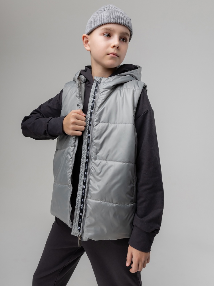 Материал Фитсистем стайл Состав 100% полиэстер Стильный жилет с капюшоном для детей школьного возраста. Материал жилета FITSYSTEM имеет специальное водонепроницаемое и водоотталкивающее покрытие и пропитку, защищает от дождя, влаги и ветра. Материал верха: Fitsystem Style 100% полиэстер, утеплитель Hetta micro premium S4-K 150 г/кв.м, подкладочный материал кулирная гладь 100% хлопок