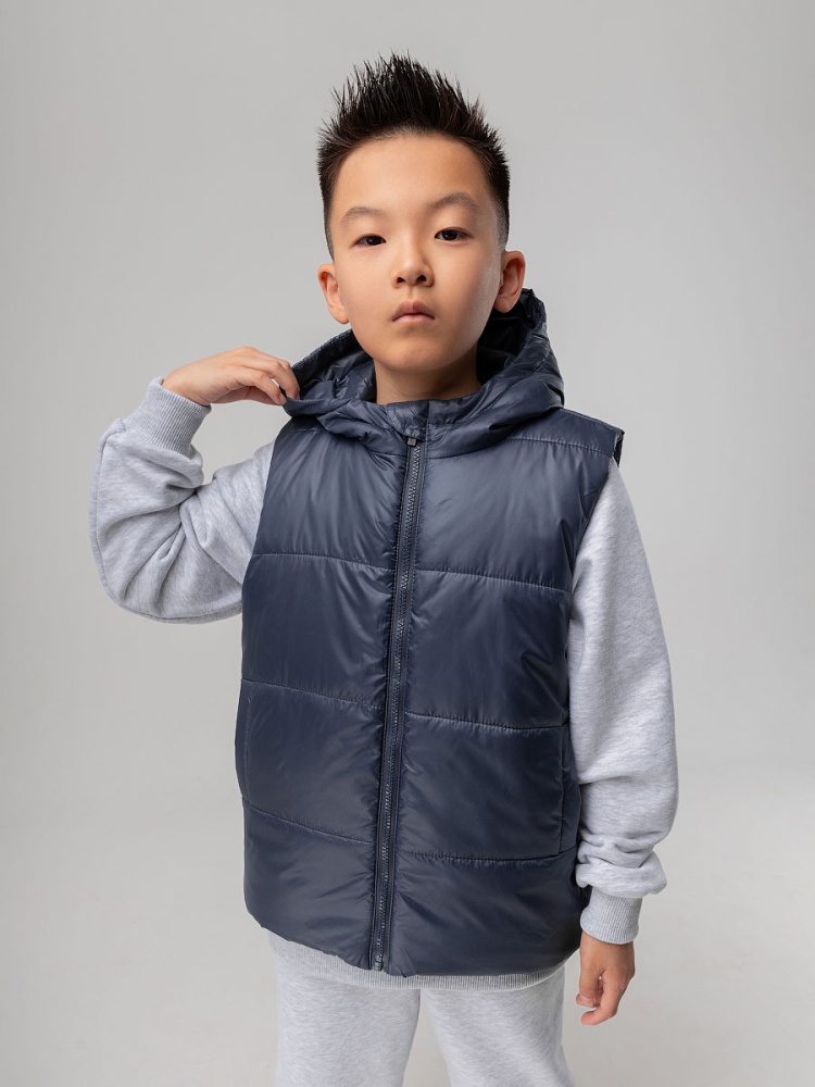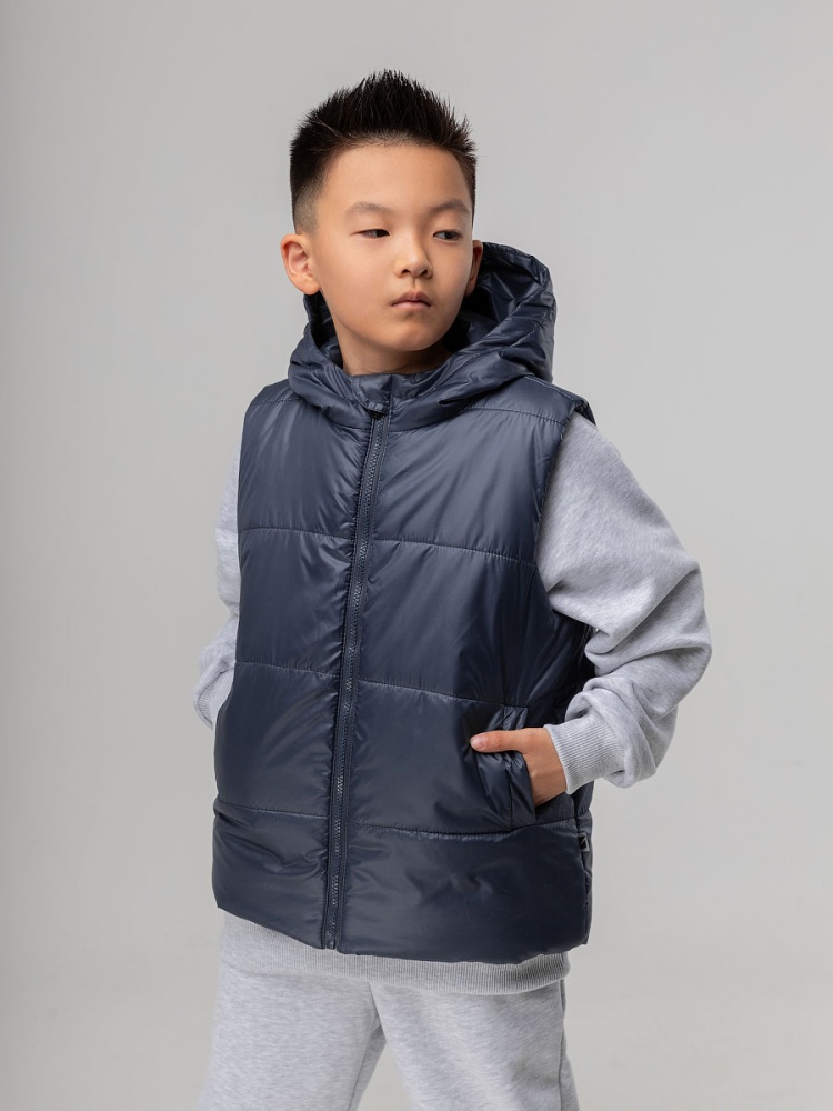 Материал Фитсистем стайл Состав 100% полиэстер Стильный жилет с капюшоном для детей школьного возраста. Материал жилета FITSYSTEM имеет специальное водонепроницаемое и водоотталкивающее покрытие и пропитку, защищает от дождя, влаги и ветра. Материал верха: Fitsystem Style 100% полиэстер, утеплитель Hetta micro premium S4-K 150 г/кв.м, подкладочный материал кулирная гладь 100% хлопок