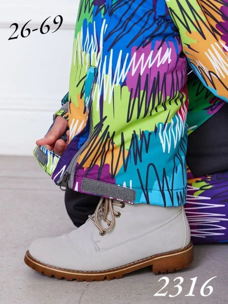 В штанинах снегозащитные муфты на обувь, ноги останутся сухими и не промокнут.