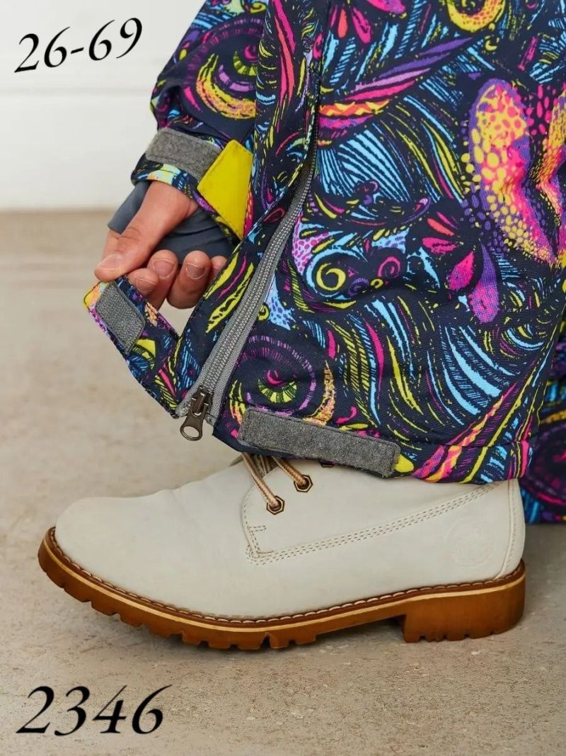 В штанинах снегозащитные муфты на обувь, ноги останутся сухими и не промокнут.