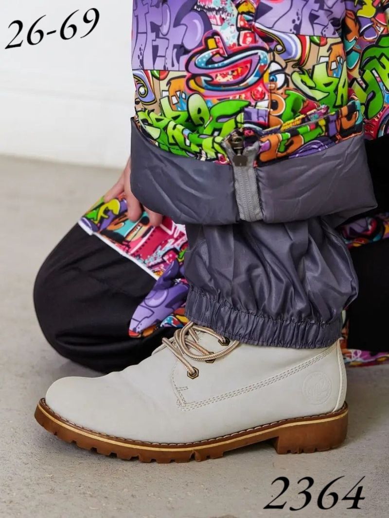 В штанинах снегозащитные муфты на обувь, ноги останутся сухими и не промокнут.