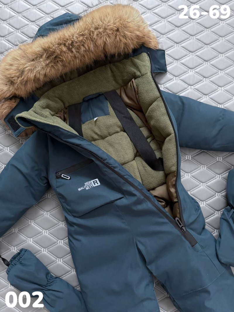 Комбинезон зимний на молнии с ветрозащитной планкой.