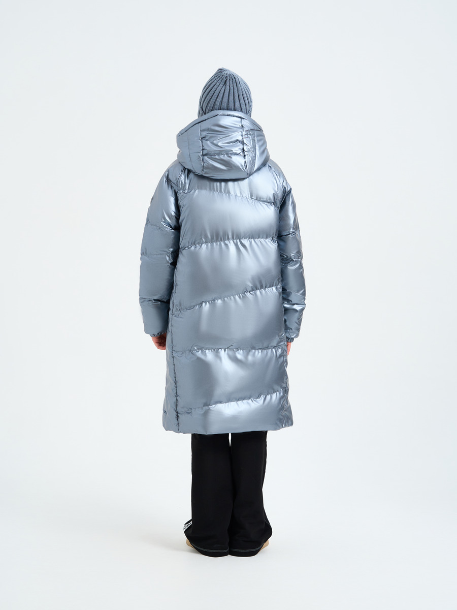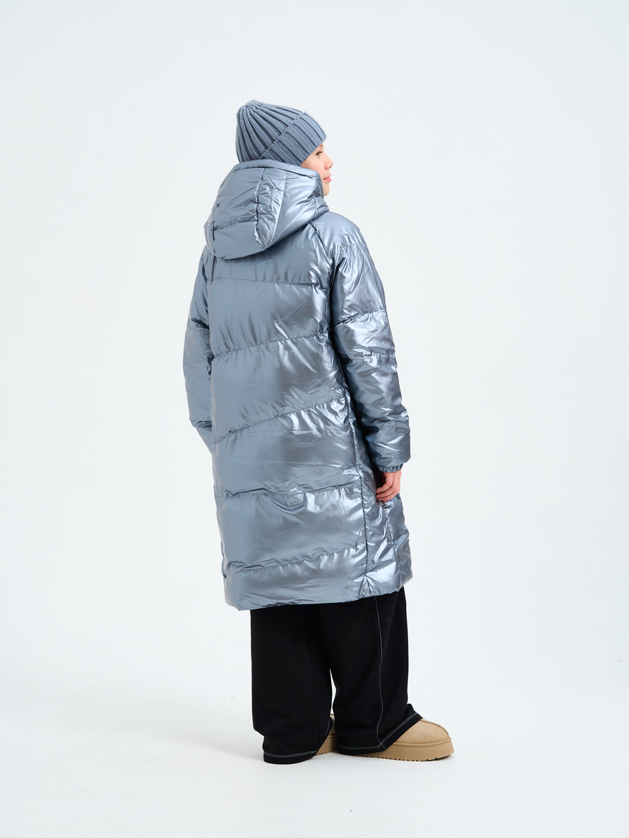 Утепленное зимнее стеганое пальто с матовым блеском прямого свободного силуэта с втачным рукавом. Втачной капюшон с высокой горловиной надежно защищает от ветра и снега. Край капюшона с кулисой, регулируемой черным шнуром-резинкой и стопорами. По низу рукава плотная резинка также обеспечивает сохранение тепла. На левом рукаве светоотражающая нашивка с фирменным логотипом. Застежка центральная на молнию контрастного черного цвета с оригинальным пуллером и ветрозащитной стеганой планкой. Боковые карманы в швах застегиваются на контрастную черную молнию с оригинальным пуллером. Изделие украшено оригинальной ассиметричной стежкой, которая придает изюминку. Ширина низа изделия регулируется с помощью эластичного шнура. Вся наша продукция сертифицирована и соответствует высочайшим стандартам качества, наша компания является участником программы "Бережливое производство"