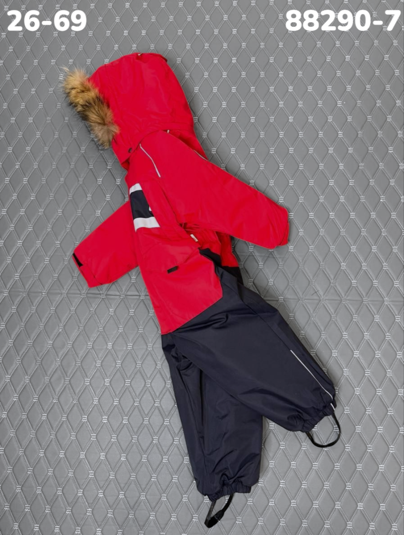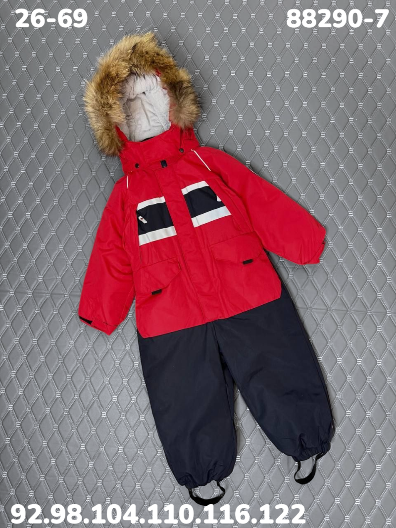 Комбинезон зимний на молнии с ветрозащитной планкой. Имеется защита подбородка.